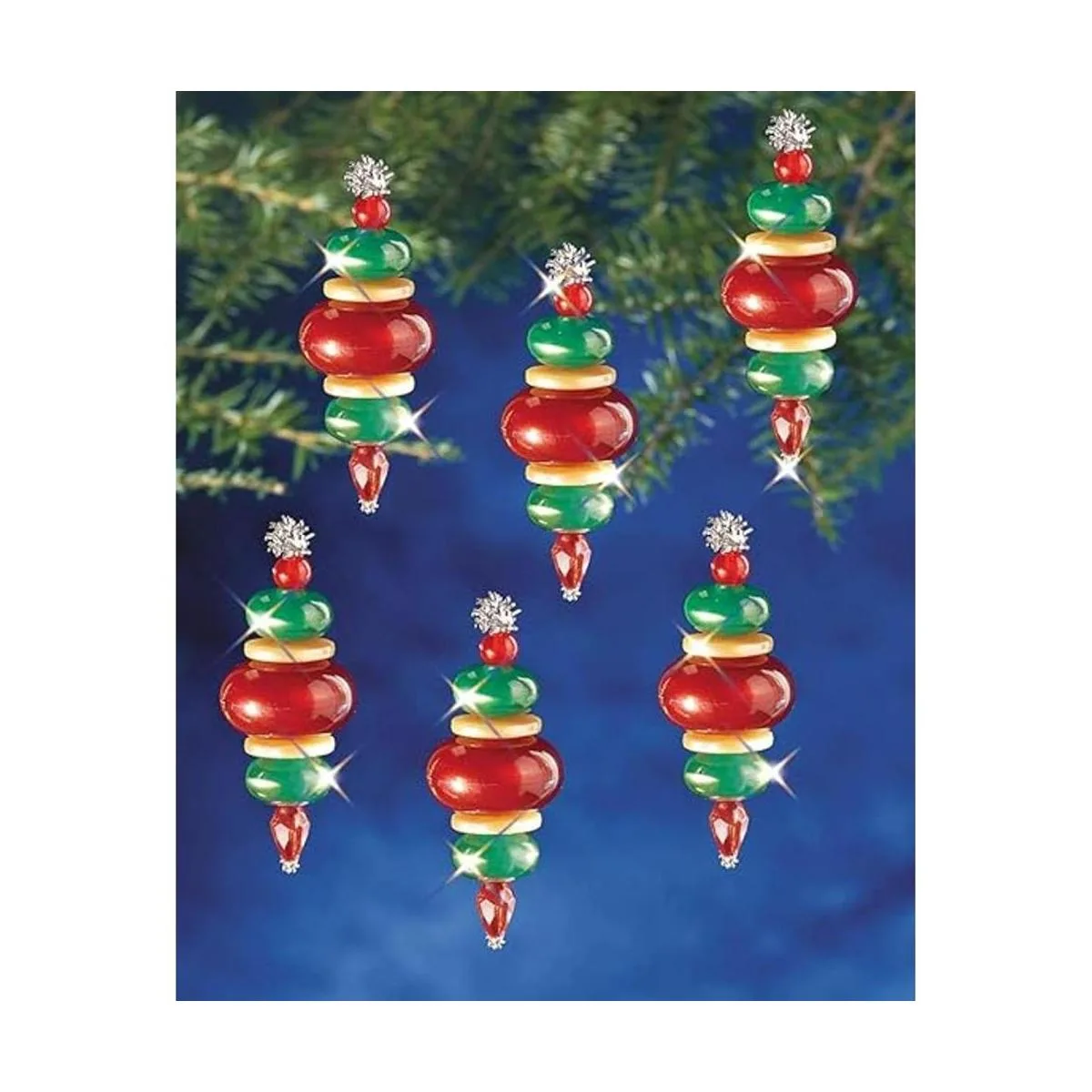 Beadery Kit de adornos de cuentas navideñas, 2.2 x 0.7 in, bolas victorianas, hace 12 adornos