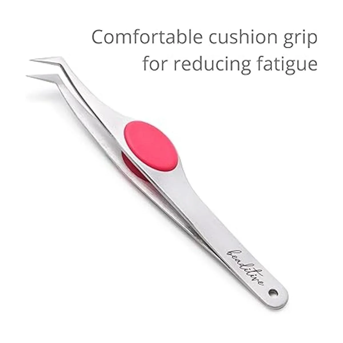 Beaditive Pinzas de punta en ángulo de alta precisión con agarre de cojín, pinzas de manualidades de 4.7 pulgadas para coser, abalorios y manualidades, pinzas de joyería no dentadas con puntas de ángulo fino, acero inoxidable