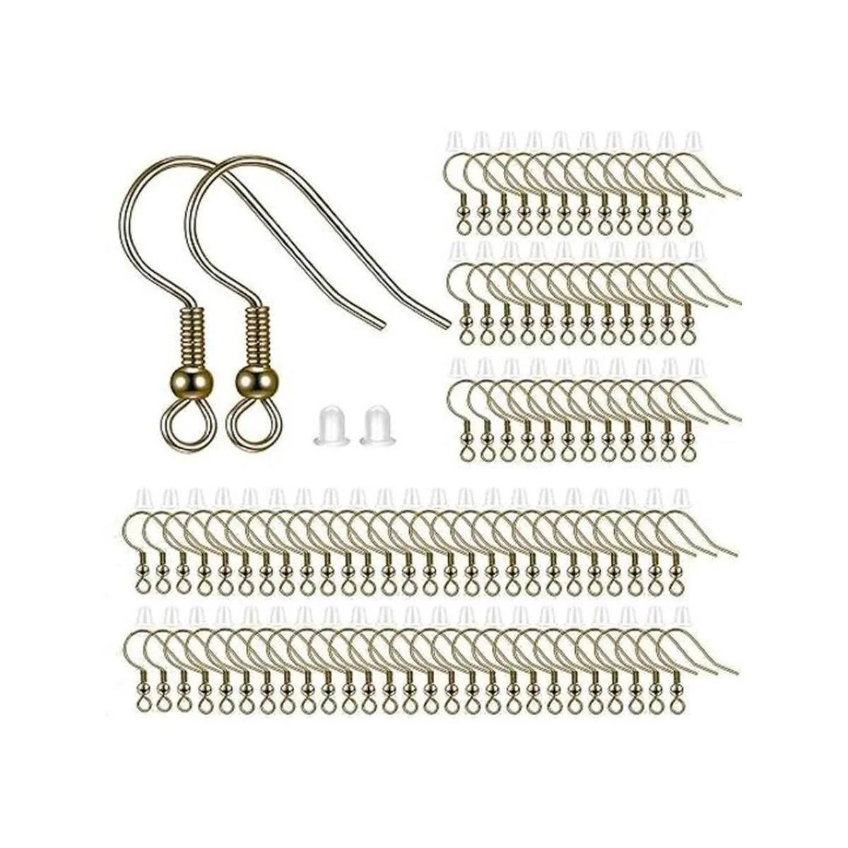 Calidad premium: el paquete incluye 300 unidades / 150 pares de ganchos para pendientes y 300 piezas de topes de goma transparente. Estos ganchos para pendientes están hechos de latón de alta calidad, duradero y seguro para tu piel sensible.