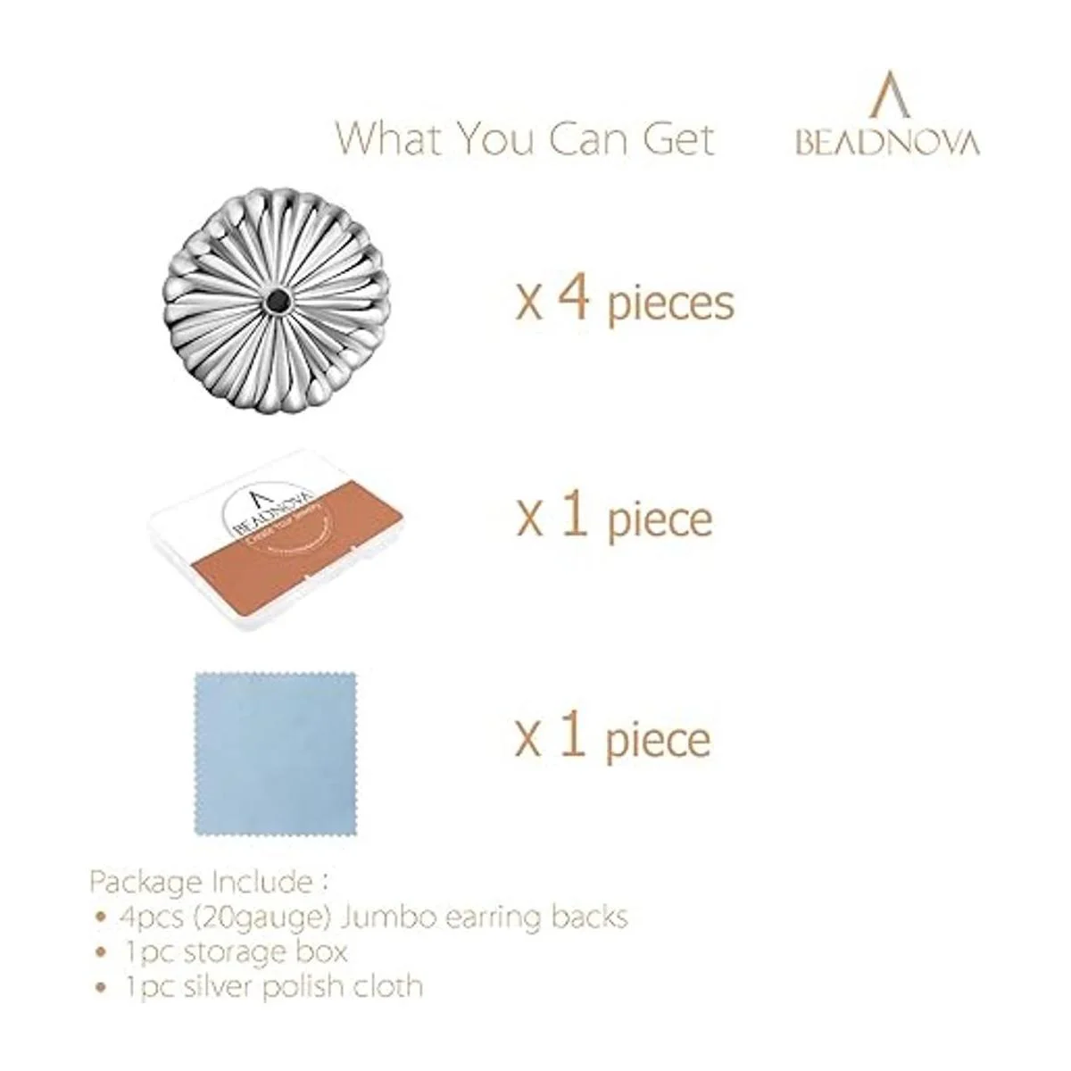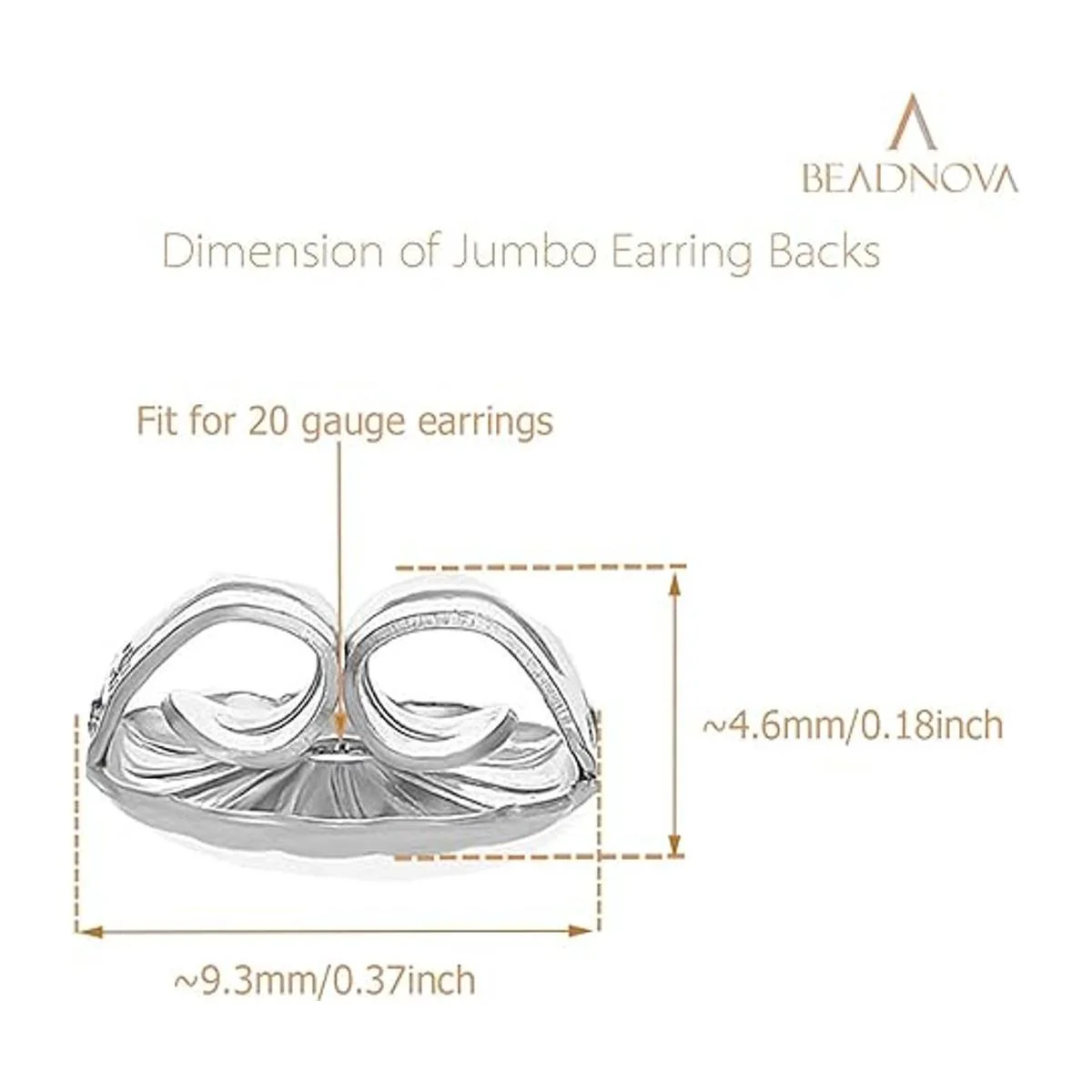 BEADNOVA Aretes gigantes de plata de ley 925, aretes grandes, cierre de mariposa, para reemplazo de pernos calibre 20, 4 piezas
