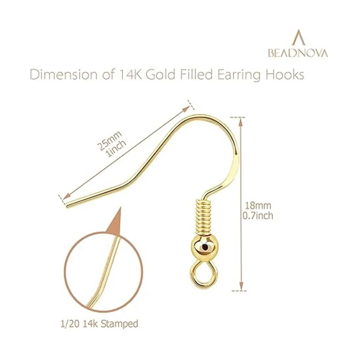 BEADNOVA Ganchos para aretes de gancho de pescado, 4 piezas de oro de 14 quilates con parte trasera de aretes para suministros de aretes, hacer aretes 4 ganchos para aretes y 4 respaldos para aretes