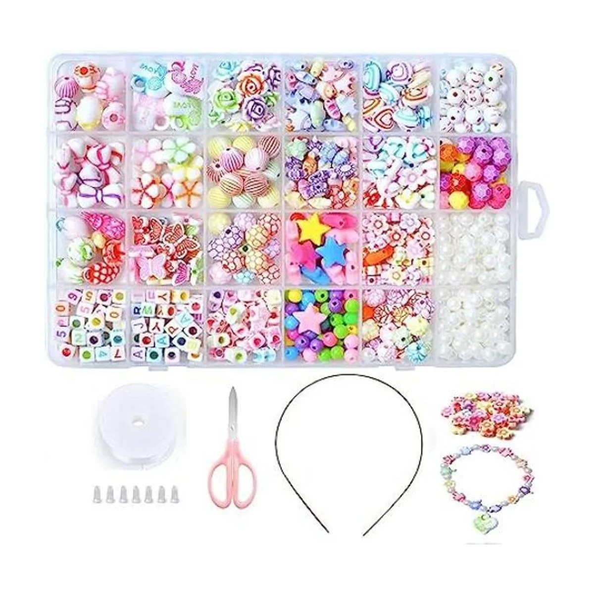 Beads Art Crafts Juguetes, Acrílico Beads pulsera kits DIY Beads Kits 24 diferentes tipos y formas colorido acrílico perlas para niñas niños DIY Bead Set regalo para 49 años niños regalo de cumpleaños