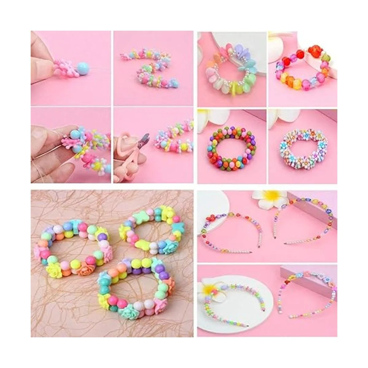 Características: juego de cuentas de manualidades ideal para adultos, niños, miembros de la familia, actividades divertidas, padres y niños pueden hacer collares, pulseras o accesorios para la cabeza. Puede ayudar a los niños mayores de 4 años a desarrollar habilidades motoras sofisticadas, fuerza de los dedos, reconocimiento de color y expresión creativa. Es una atracción muy atractiva para que las niñas jueguen y hagan sus propias joyas únicas, adecuadas para su uso en casa, al aire libre, viajes y fiestas.