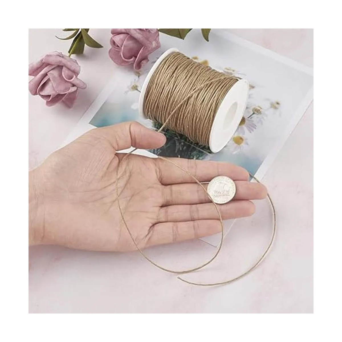 Beadthoven 1 rollo de 0.039 in hilo de algodón encerado cordón de cuentas para hacer joyería cuero costura manualidades macramé suministros 100 yardas por rollo bobina