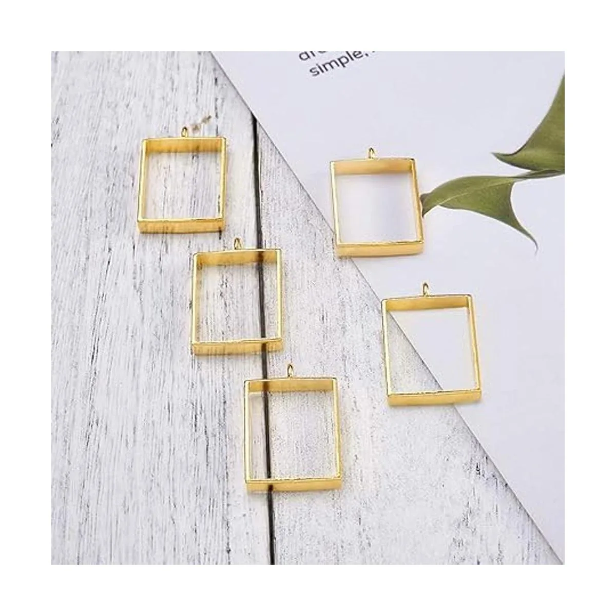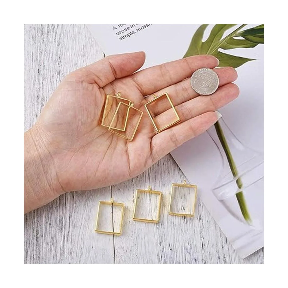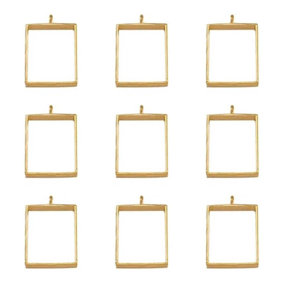 Beadthoven 10 colgantes de aleación cuadrada dorada con parte trasera abierta, metal hueco, marco de flor prensada en blanco, colgante para hacer joyas de resina, 1.142 x 0.787 x 0.197 in, agujero 0.087 in