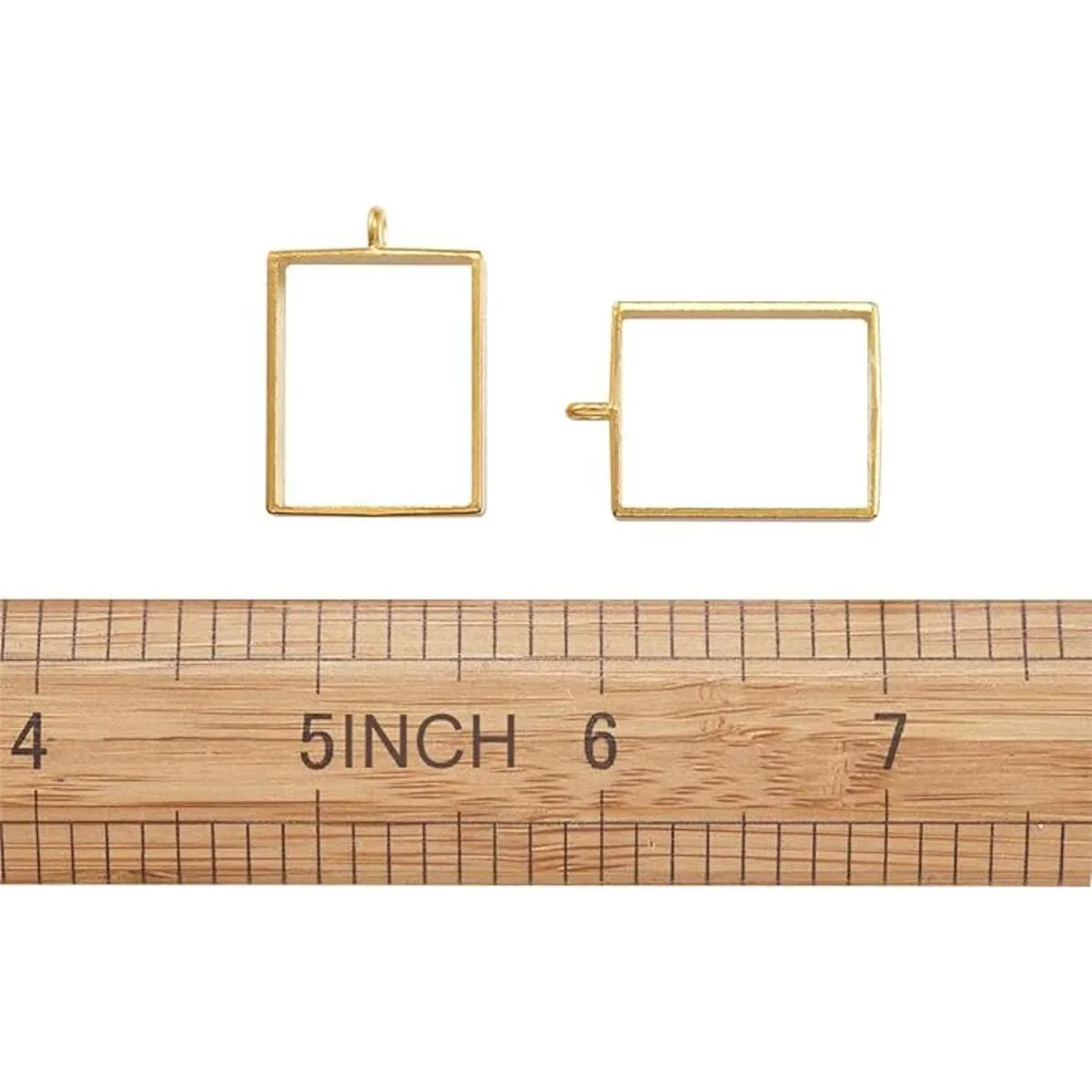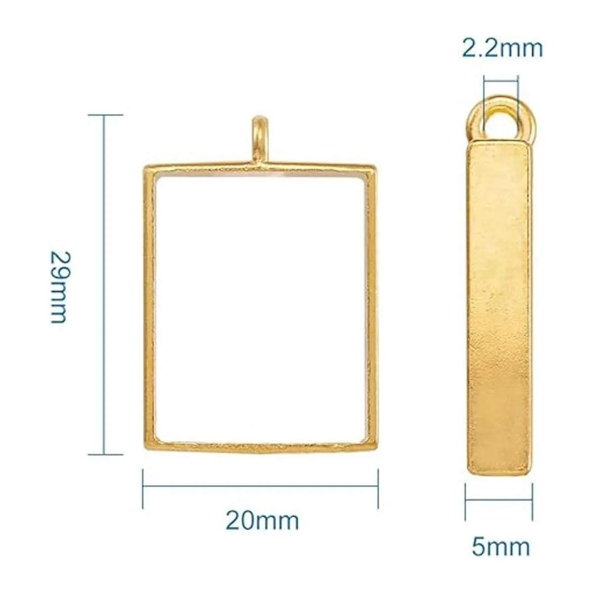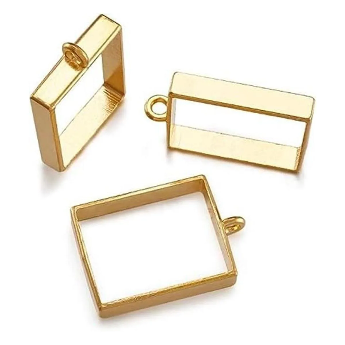 Beadthoven 10 colgantes de aleación cuadrada dorada con parte trasera abierta, metal hueco, marco de flor prensada en blanco, colgante para hacer joyas de resina, 1.142 x 0.787 x 0.197 in, agujero 0.087 in