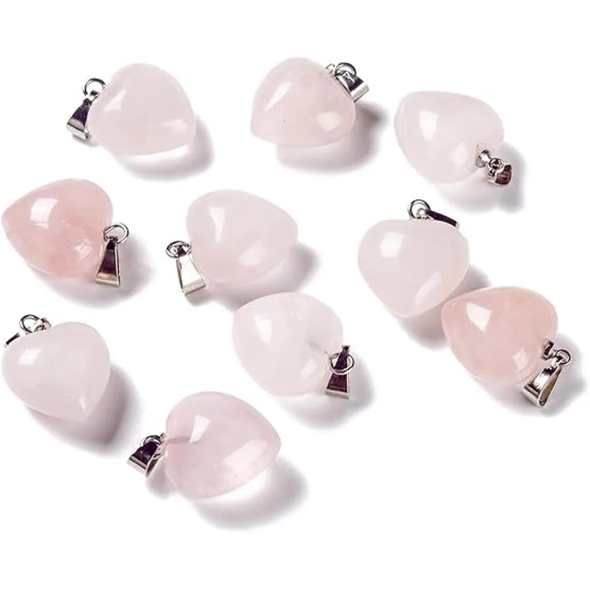 Beadthoven 10 colgantes de piedra de cuarzo rosa con forma de corazón hinchado, piedras preciosas naturales, cristal curativo, chakras, reiki, cuentas de piedras preciosas rosas para hacer collares, joyas, día de San Valentín, boda