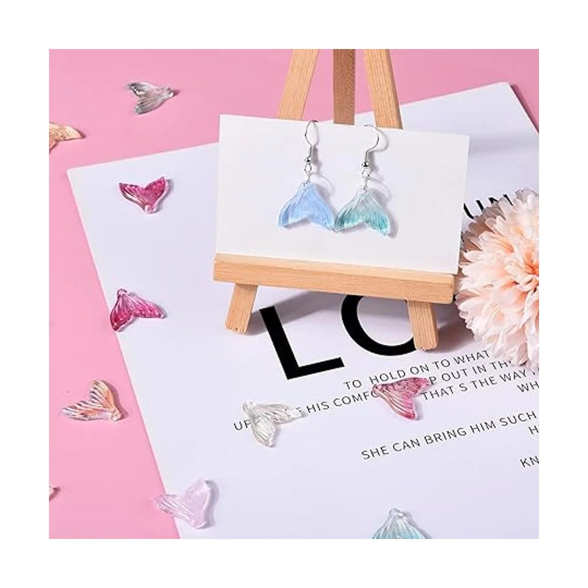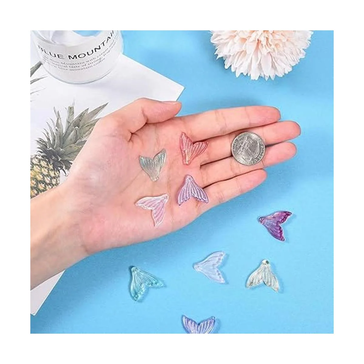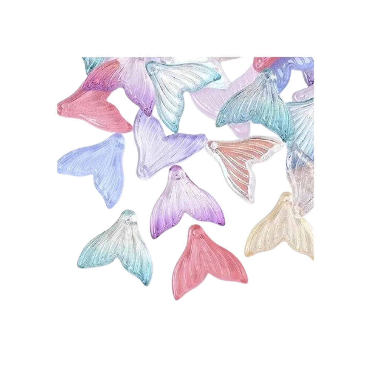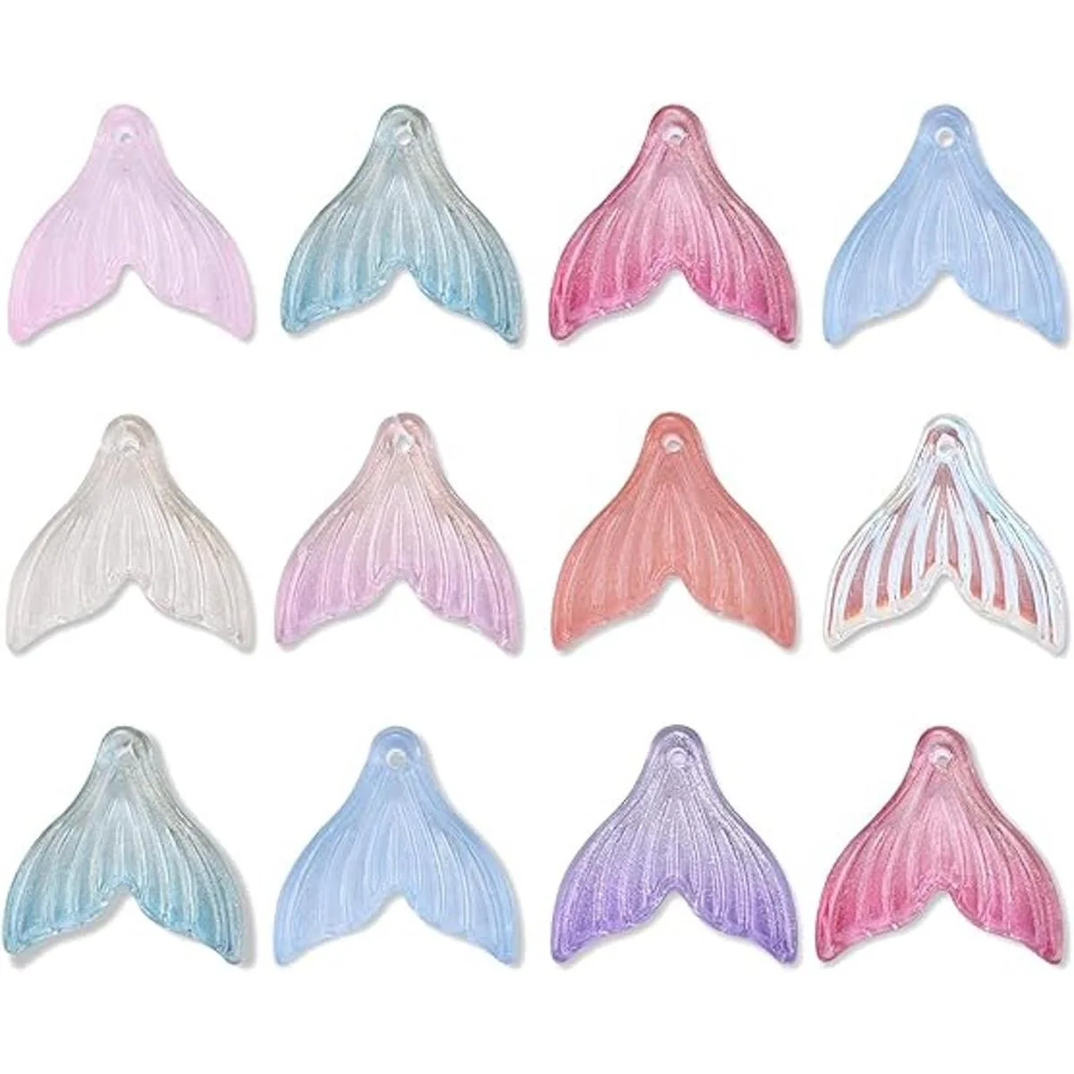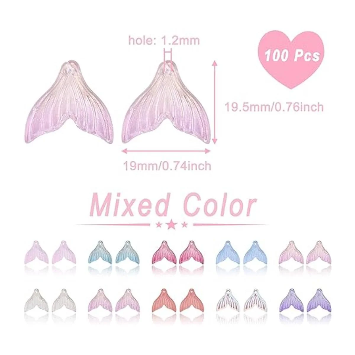 Beadthoven 100 colgantes de cristal transparente de 0.748 x 0.768 x 0.138 in con forma de cola de pez de sirena, varios colores, colgantes de cristal de animales de mar sueltos para manualidades, pulseras, collares, suministros de fabricación de joyas