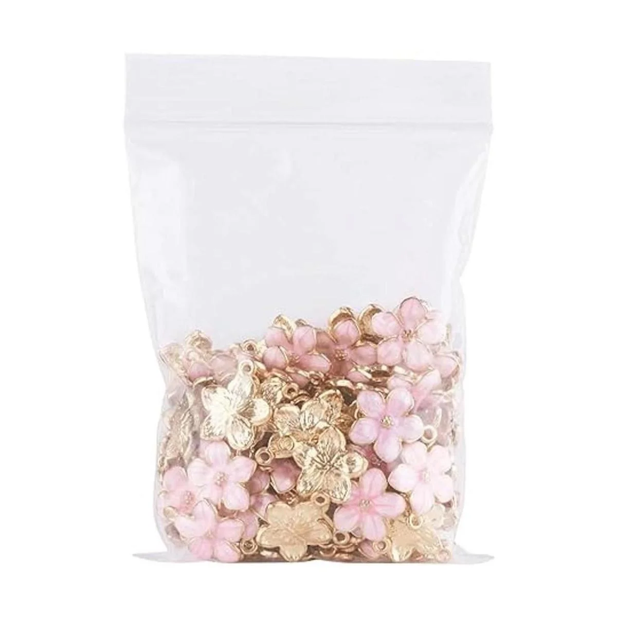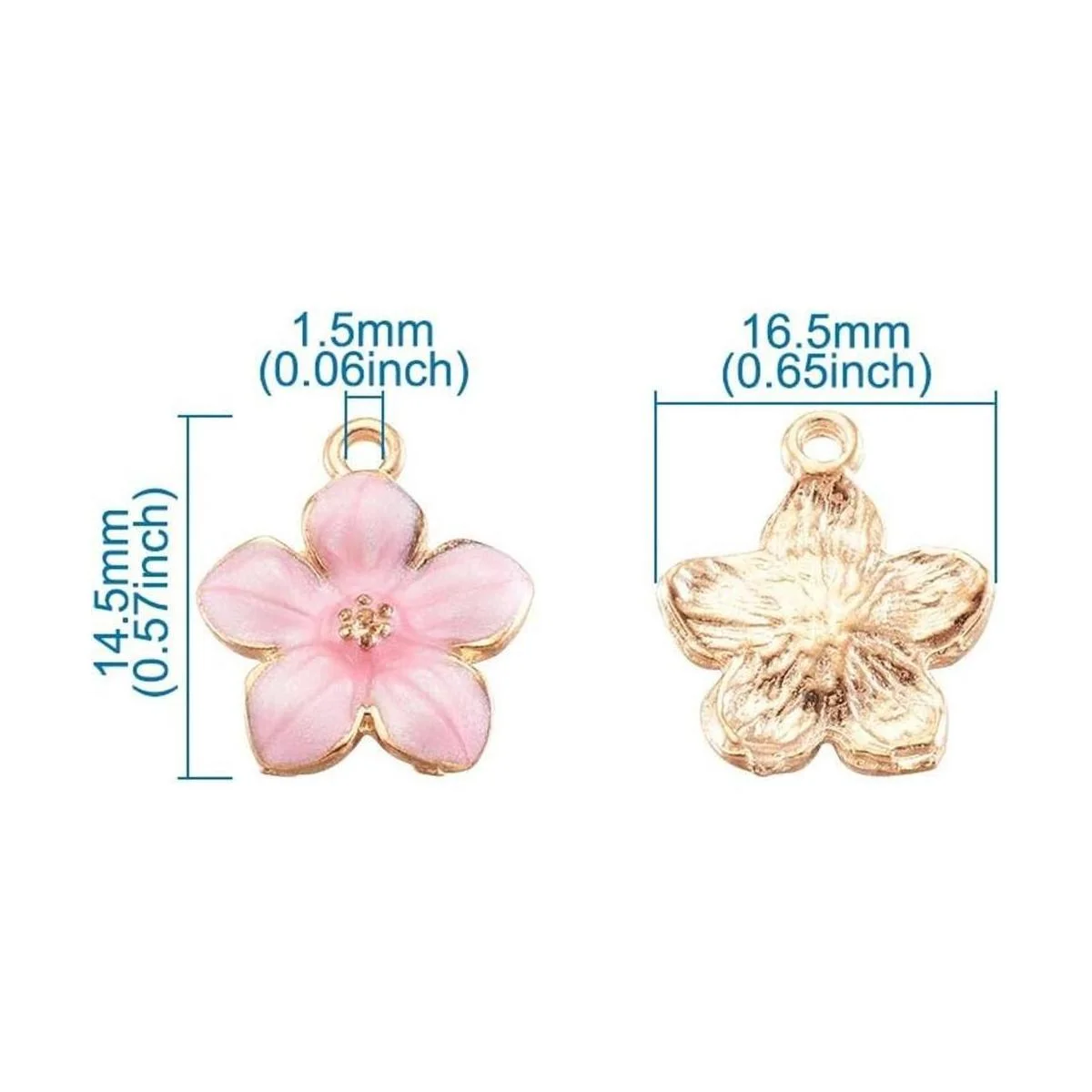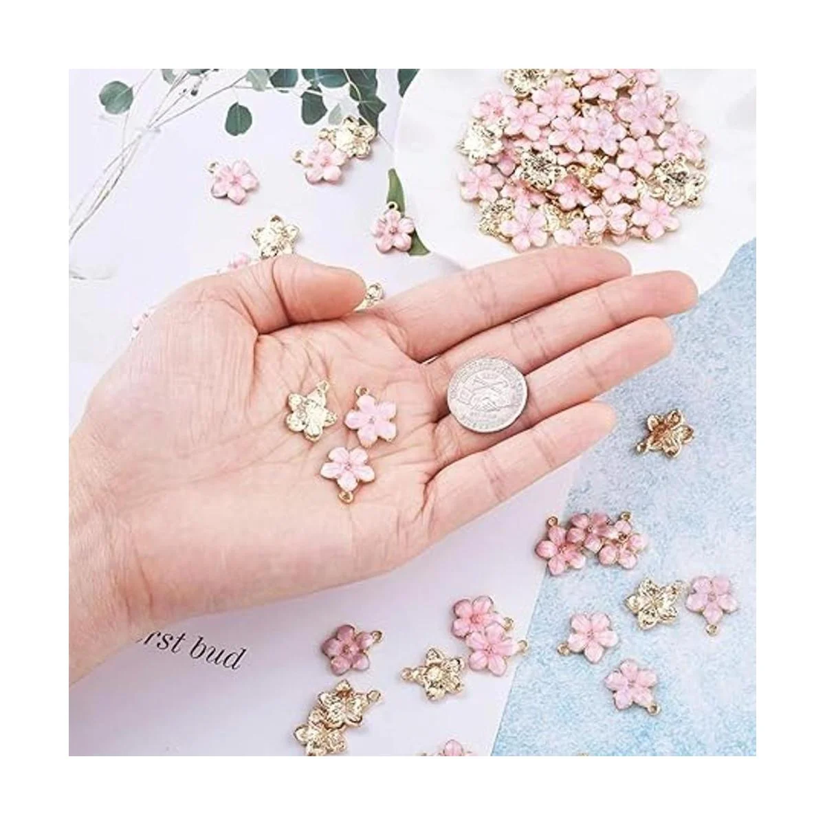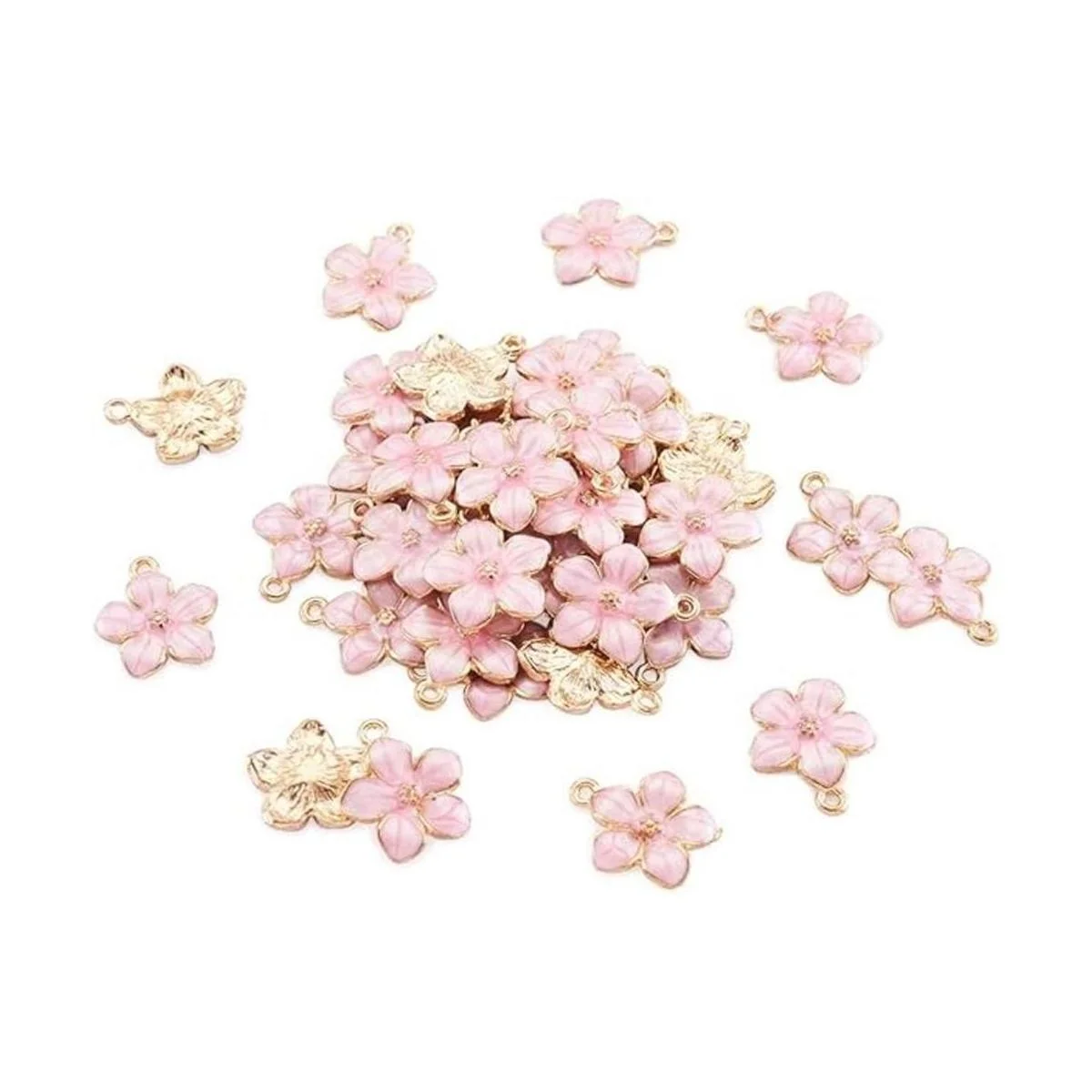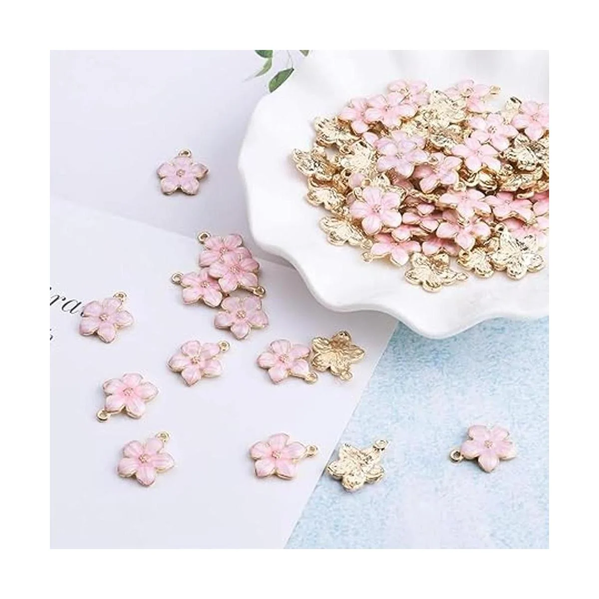 Beadthoven 100 colgantes de esmalte de flores rosadas, chapados en oro, dijes colgantes colgantes de flor de cerezo para hacer joyas, pulseras, collares, aretes, manualidades de bricolaje