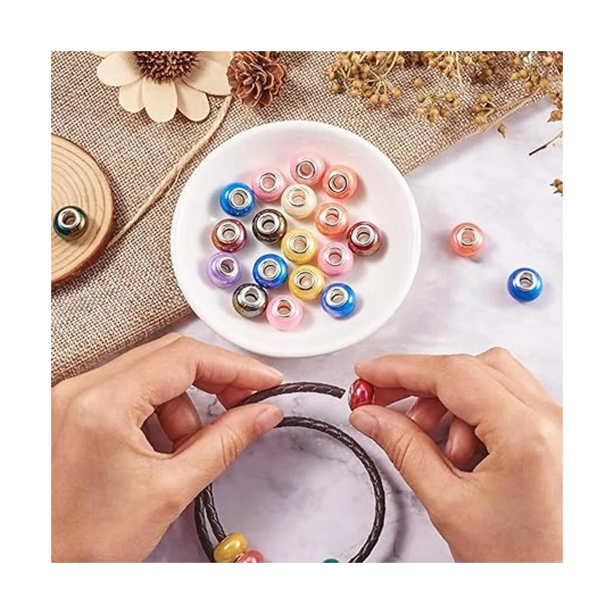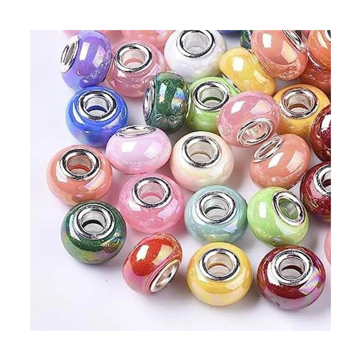 Beadthoven 100 cuentas europeas de resina de porcelana, agujero grande, coloridas, color AB, cuentas espaciadoras europeas con núcleos de color plateado para bricolaje, pulseras europeas, joyería, suministros de manualidades