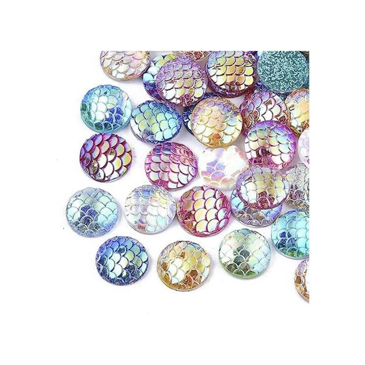Beadthoven 100 piezas de 0.394 in de resina redonda plana de sirena, Cabujones mezclados AB con cúpula brillante para hacer joyas de bricolaje decoración de uñas