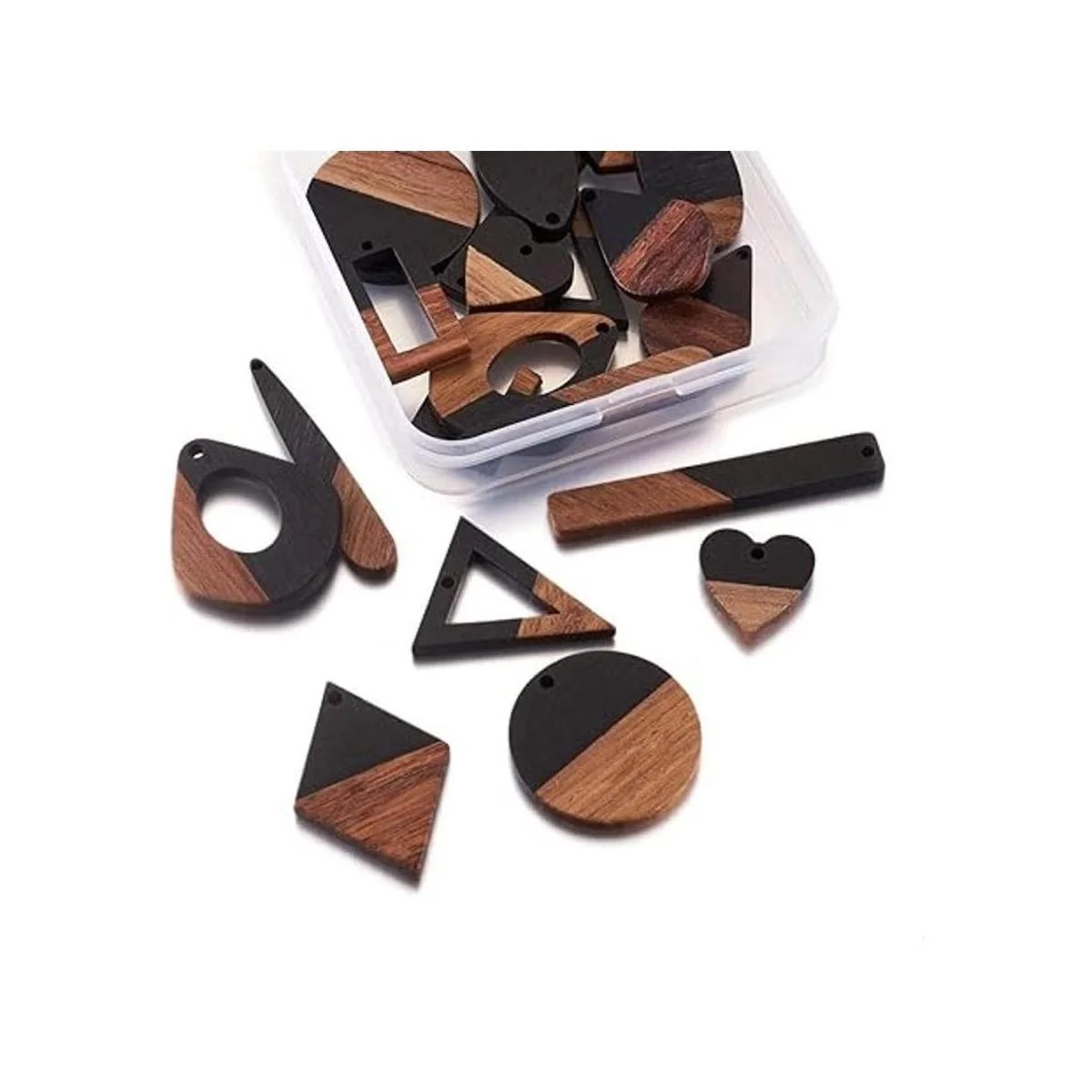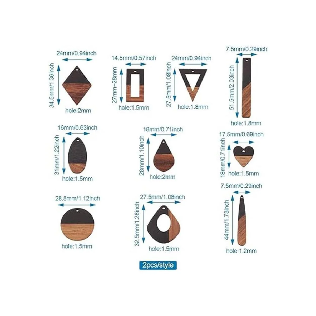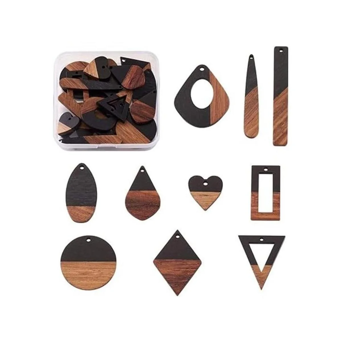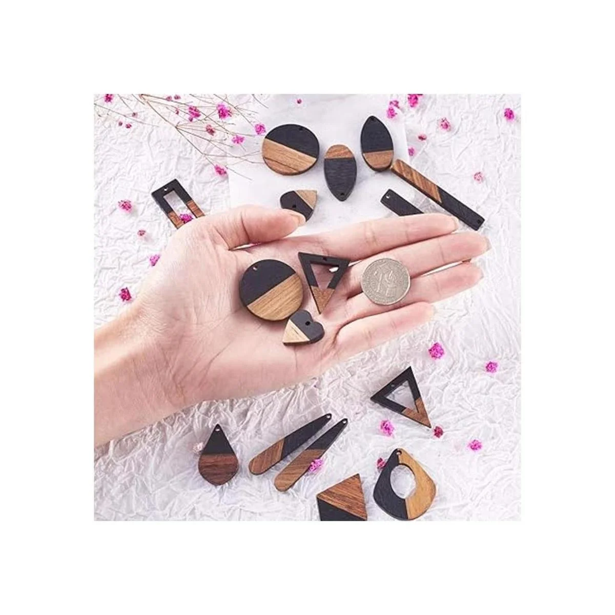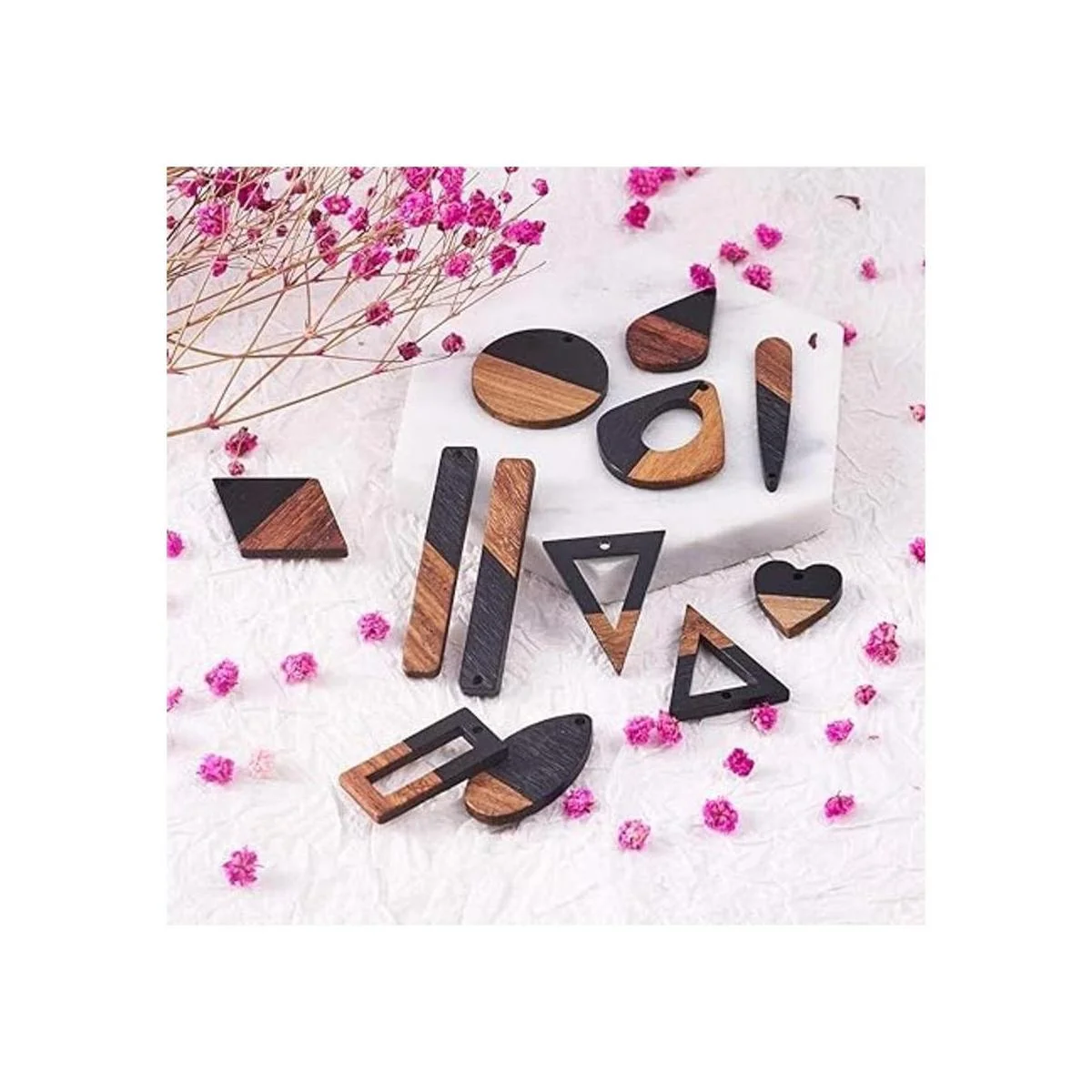 Bonito surtido: incluye lágrima, barra rectangular, corazón, triángulo, redondo, rombo… Hemos seleccionado 10 formas populares en este juego de colgantes de resina de madera. Conveniente para hacer aretes u otras joyas emparejadas, también proporciona más posibilidades para tus proyectos de manualidades.