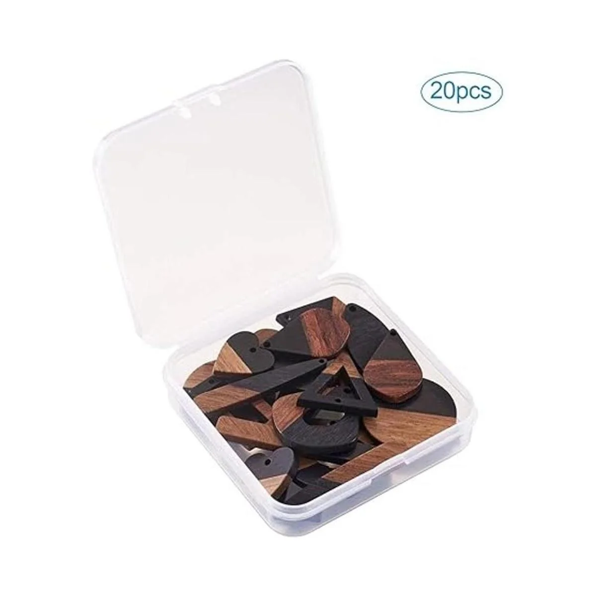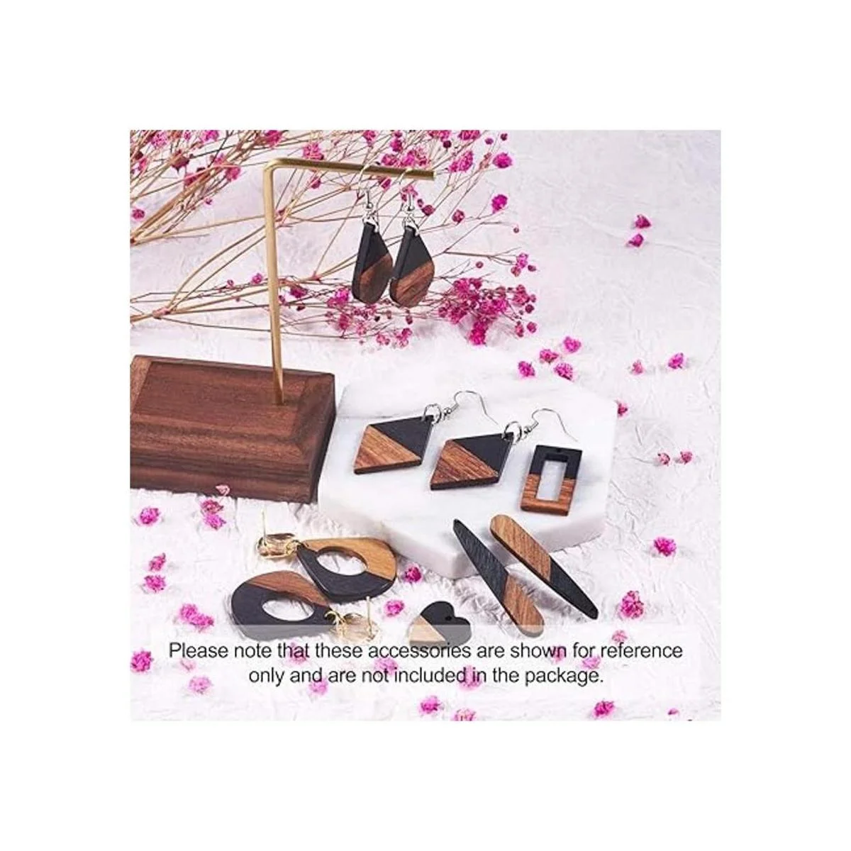 Beadthoven 20 pares de dijes de resina de madera natural negra para bricolaje, aretes de forma mixta, piezas de madera, colgantes para hacer joyas