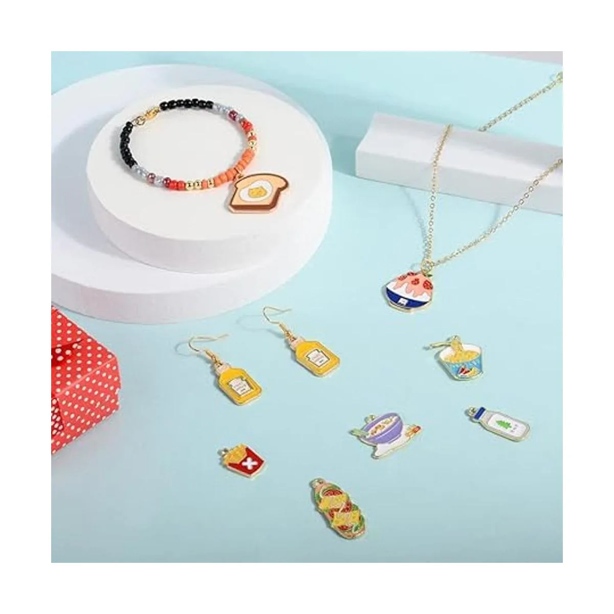 Alta calidad: estos abalorios esmaltados con temática alimentaria están hechos de aleación de calidad, resistentes y duraderos durante mucho tiempo. También es ligero en peso que no traerá carga a tu uso. Con esmalte colorido en la parte delantera y chapado en oro claro en la parte posterior, son exquisitos y atractivos