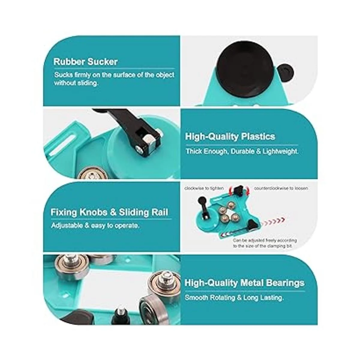 Plantilla ajustable universal: la base está equipada con una potente ventosa, que se puede fijar firmemente a la superficie del objeto sin deslizarse. El rango de sujeción es de 0.1573.268 in, que se utiliza comúnmente para la mayoría de herramientas de perforación de agujeros.