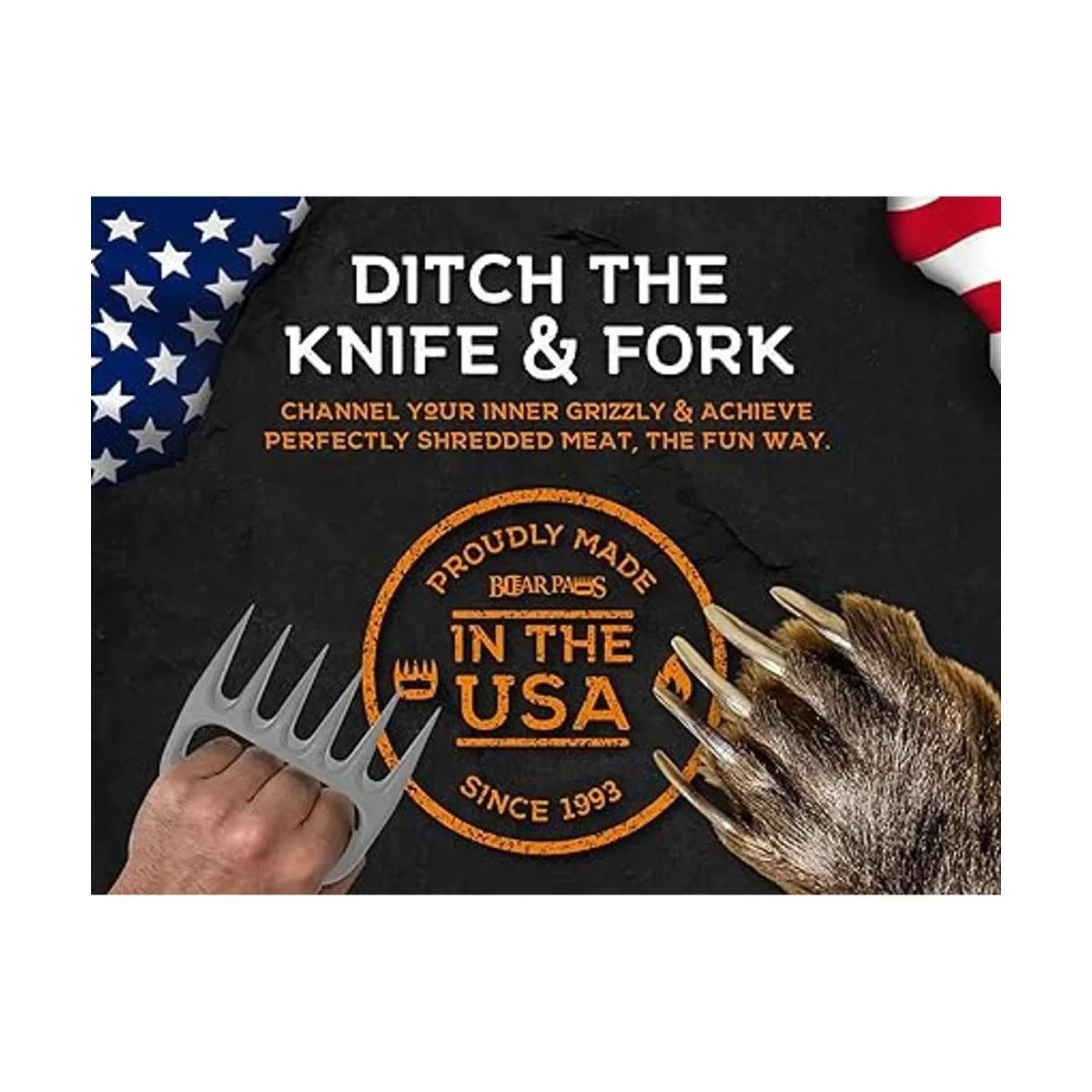 Bear Paws, Las garras originales para trituradoras de carne: canaliza tu Grizzly interior y logra carne perfectamente triturada, de la manera divertida. Bear Paws son la herramienta multiusos definitiva para barbacoa que te ayuda a levantar, triturar y servir tus carnes favoritas. Fabricado con orgullo en los Estados Unidos desde 1993.