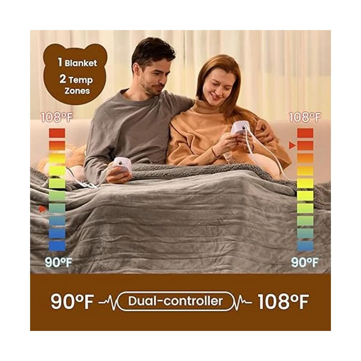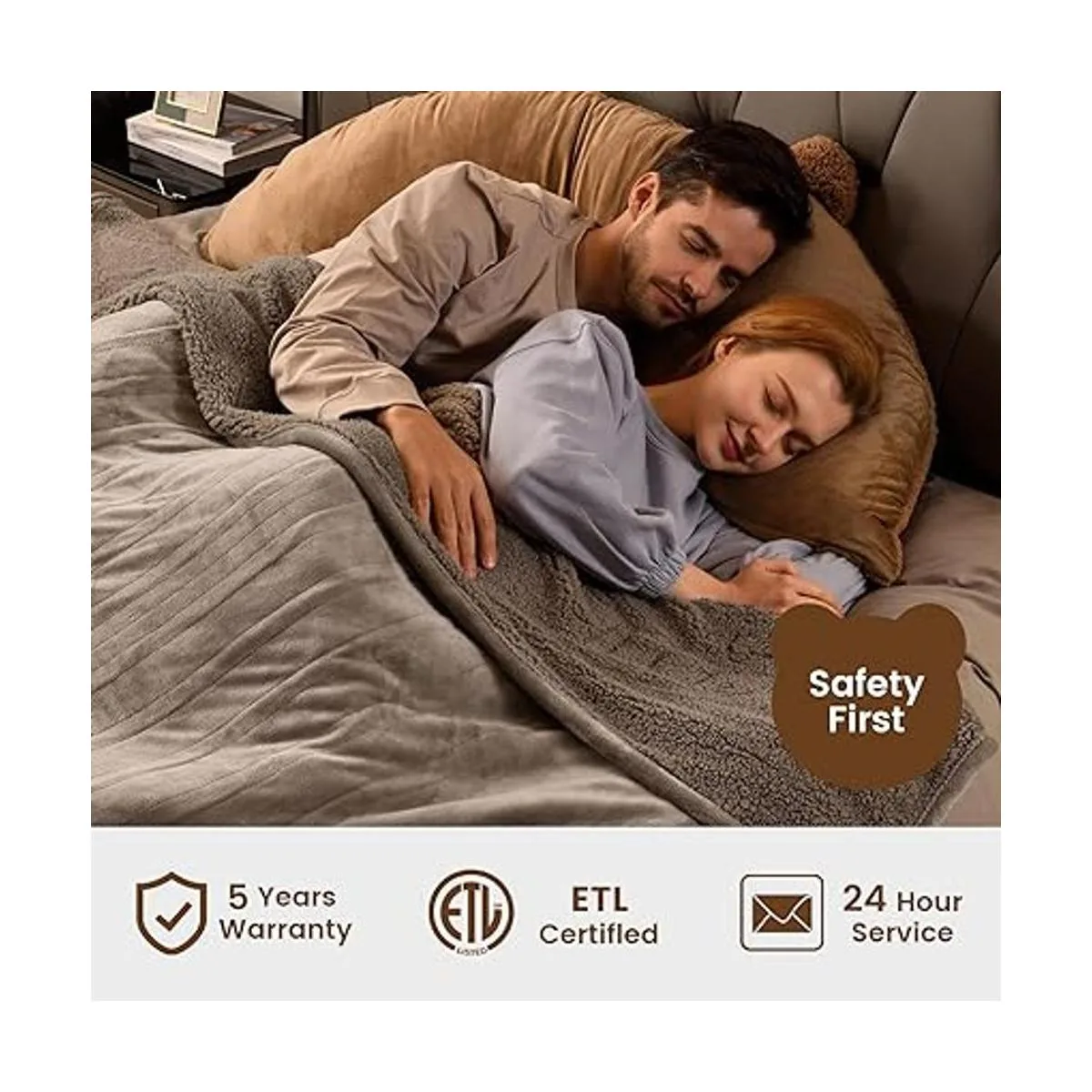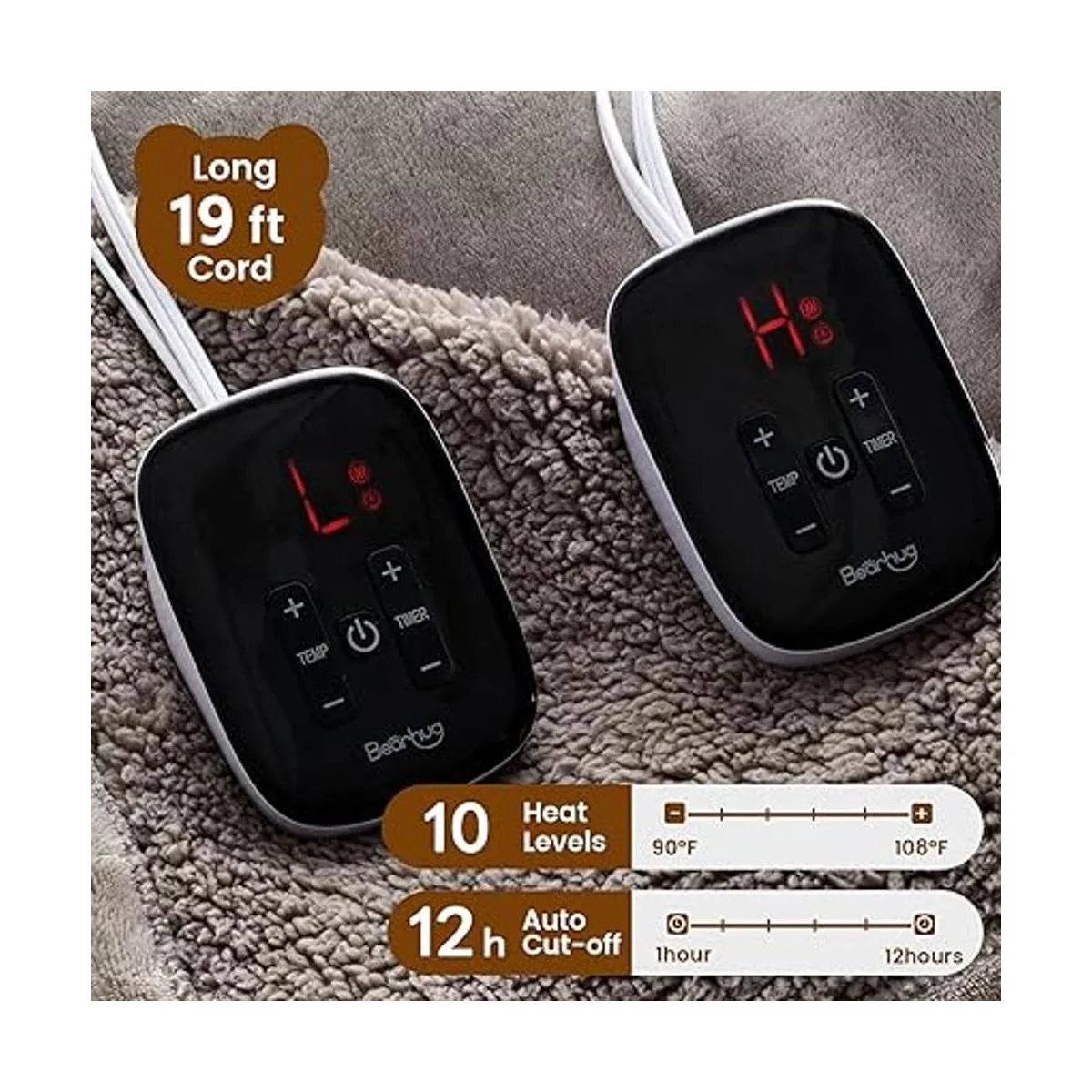 Bearhug Manta térmica eléctrica King de 100 x 90 pulgadas, doble controlador, terciopelosherpa, 10 niveles de calefacción y apagado automático de 1 a 12 h, antisobrecalor, ETL, lavable a máquina