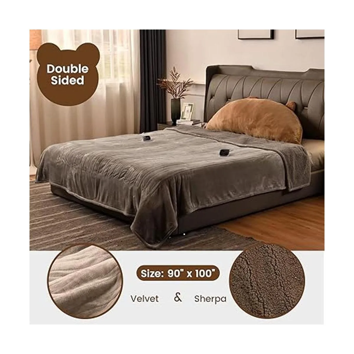 Bearhug Manta térmica eléctrica King de 100 x 90 pulgadas, doble controlador, terciopelo/sherpa, 10 niveles de calefacción y apagado automático de 1 a 12 h, antisobrecalor, ETL, lavable a máquina