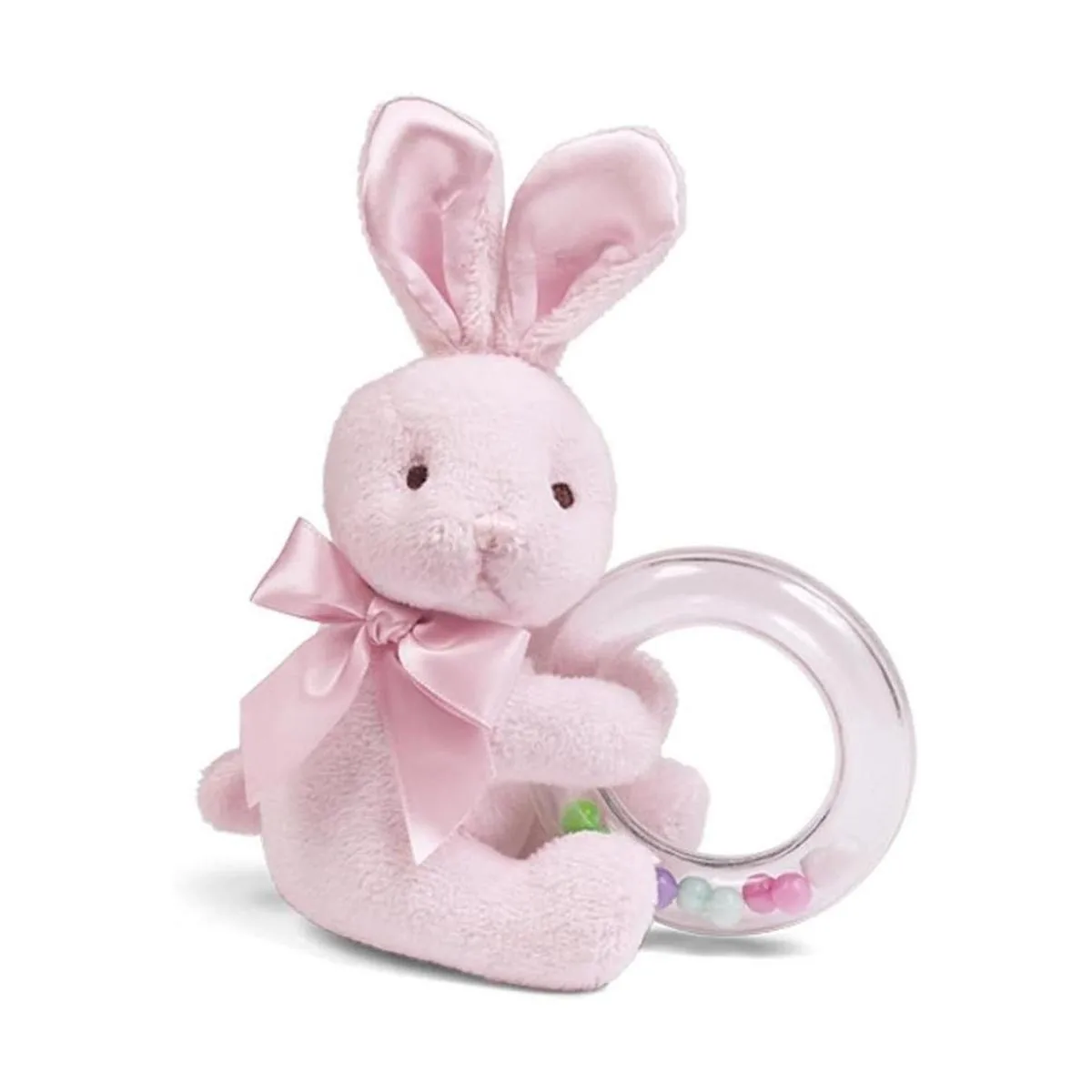 Bearington Anillo de peluche de algodón para bebé, diseño de conejo rosa, 5.5 in