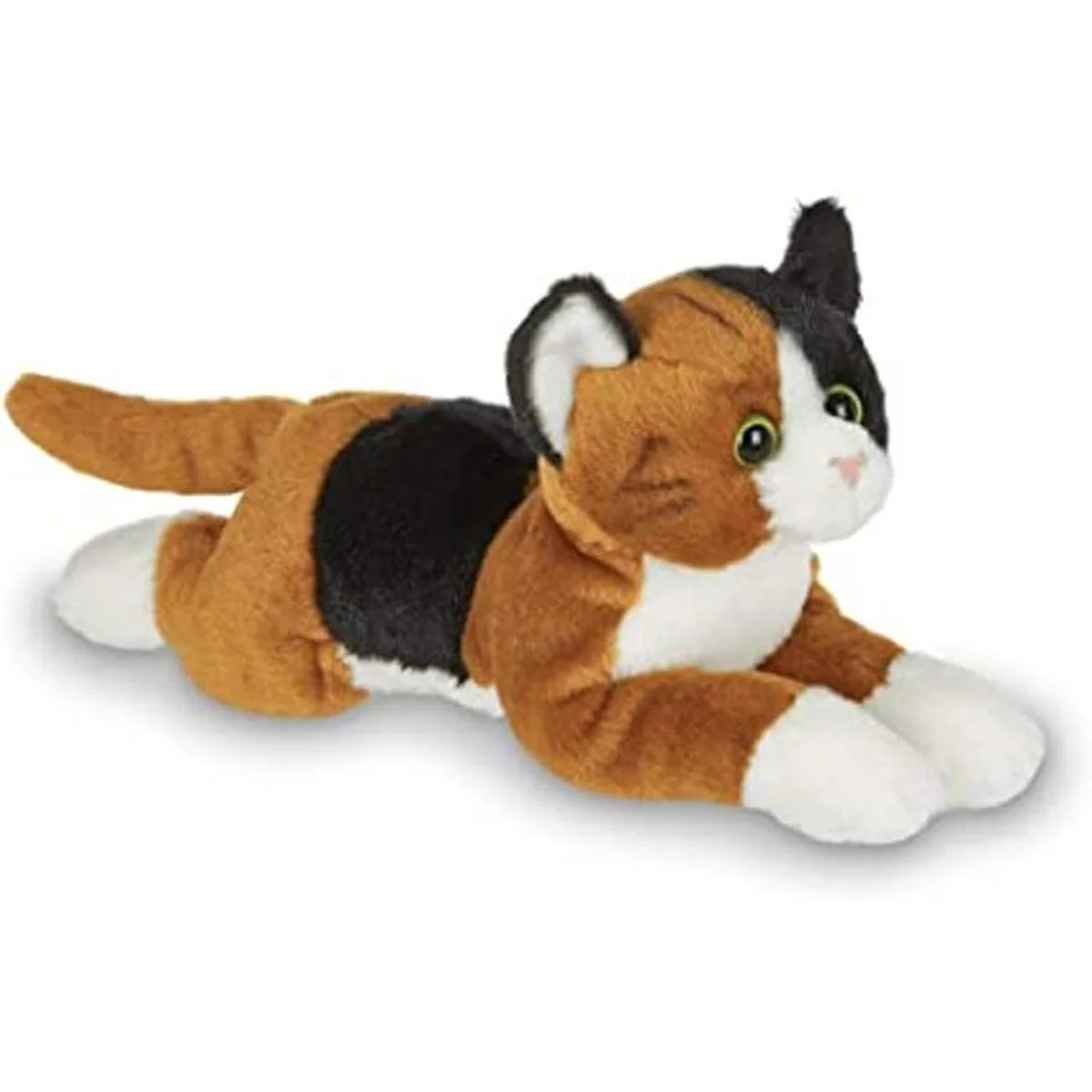 Lindo gatito: adorable gato de peluche de 7.9 in de largo, pequeño, negro, naranja y blanco, con pelo suave y una cara dulce expresiva