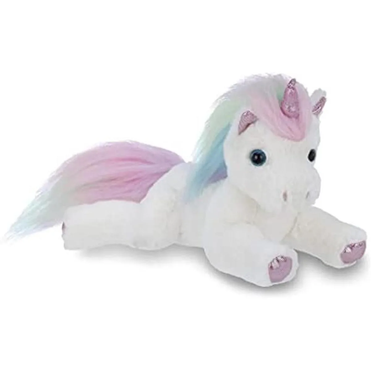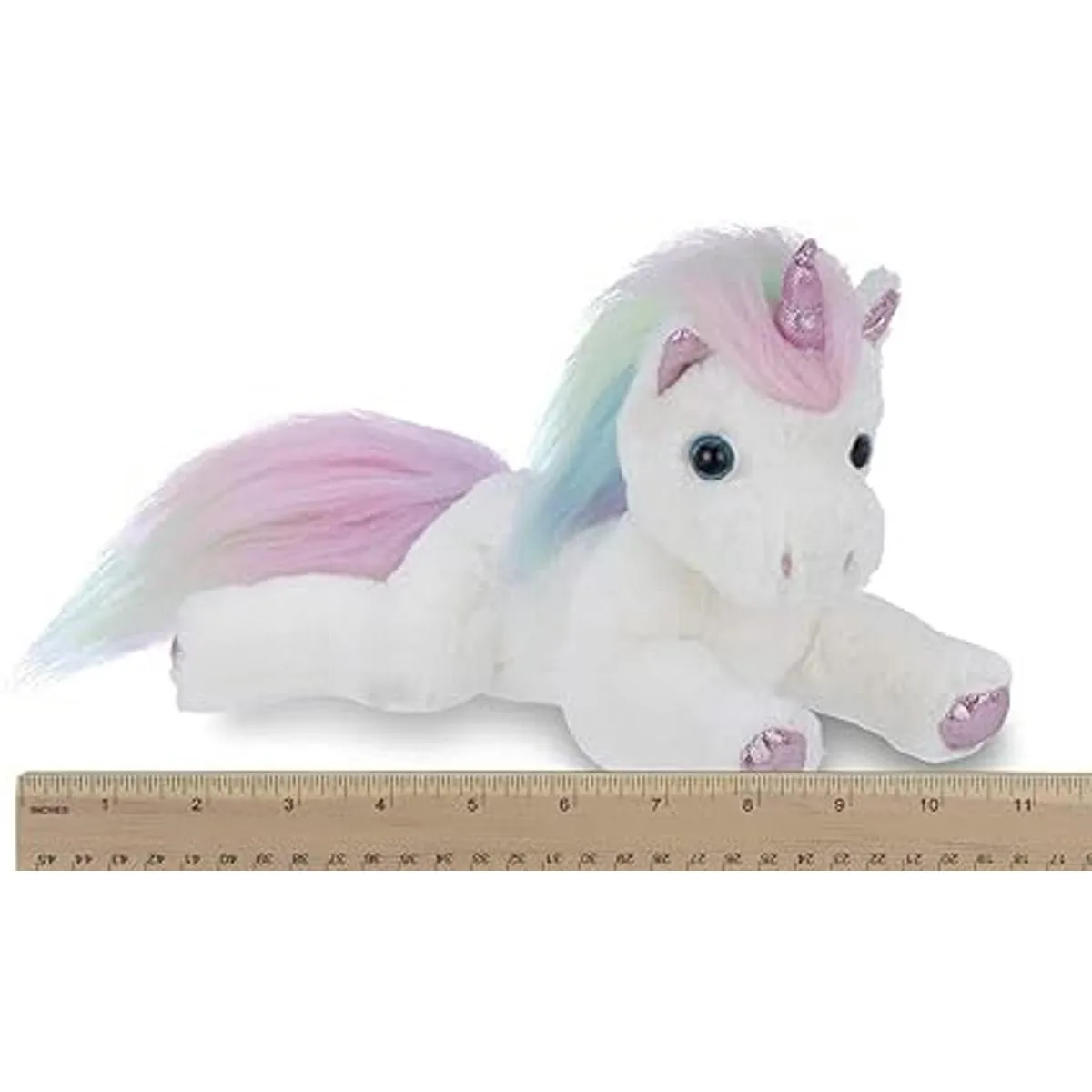 Unicornio brillante de arco iris: adorable animal de peluche de unicornio de 10 pulgadas de largo con piel suave, melena arcoíris, ojos de estilo cristal brillante y almohadillas de pie rosa brillante, superficie lavable