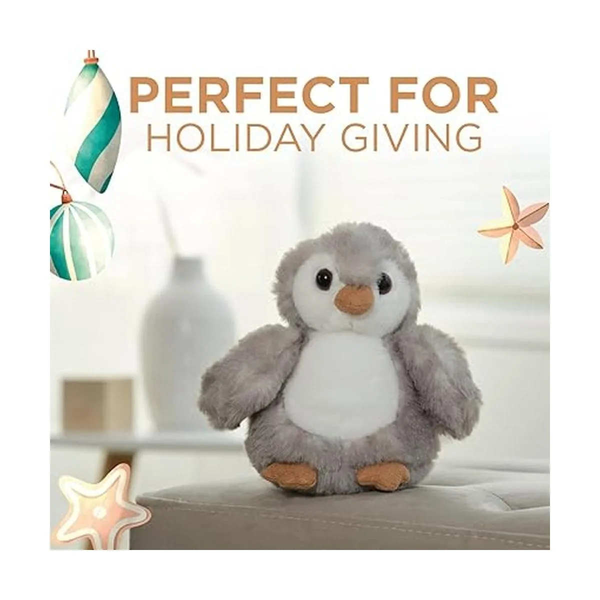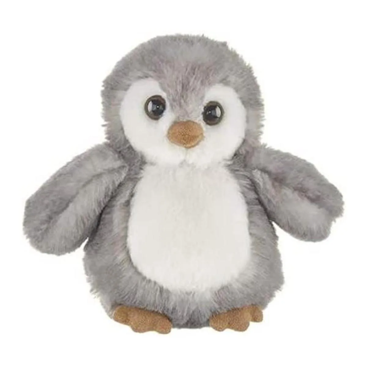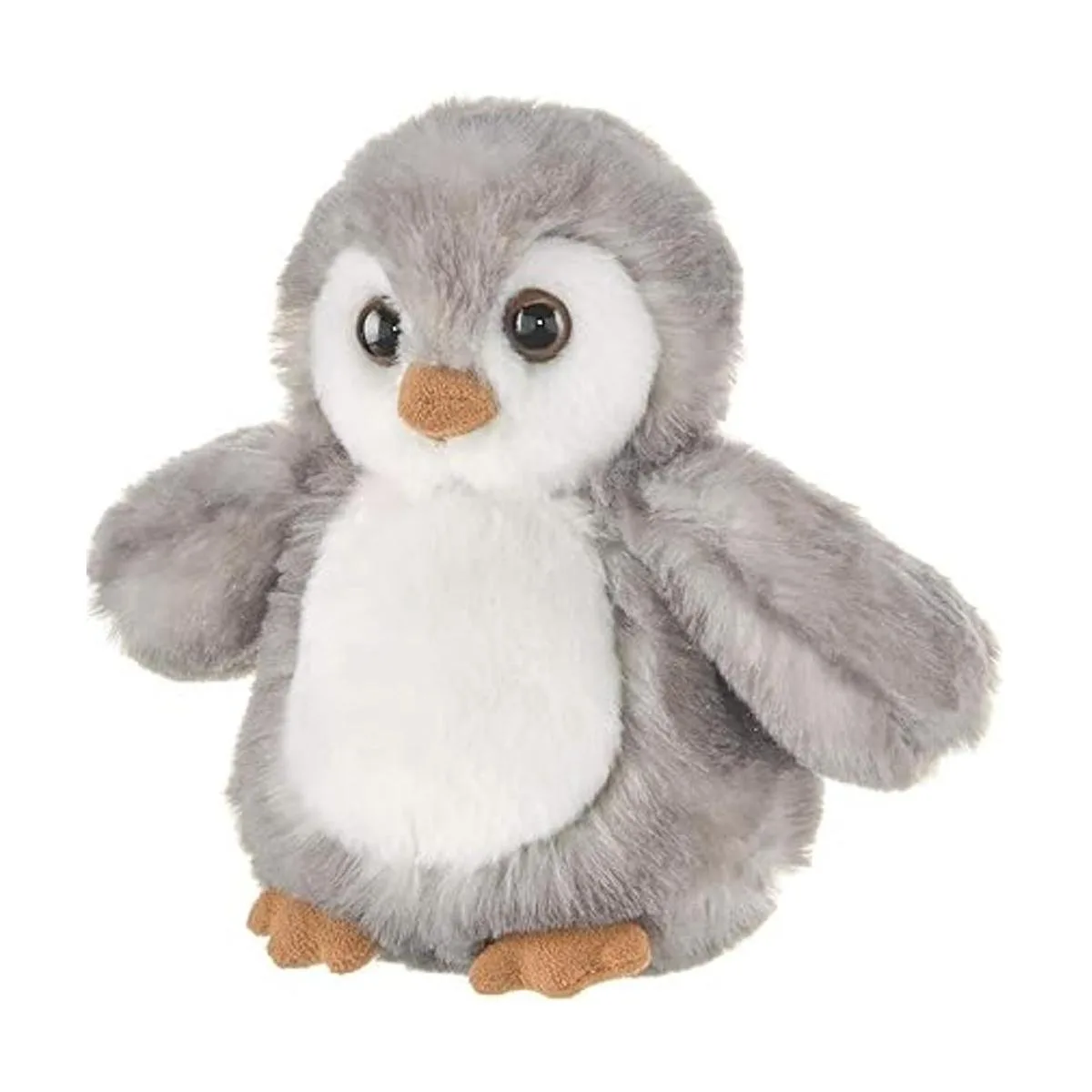 Adorable pingino de peluche de 5.9 in con pelo de felpa gris y blanco y cara dulce expresiva, lavable a máquina.
