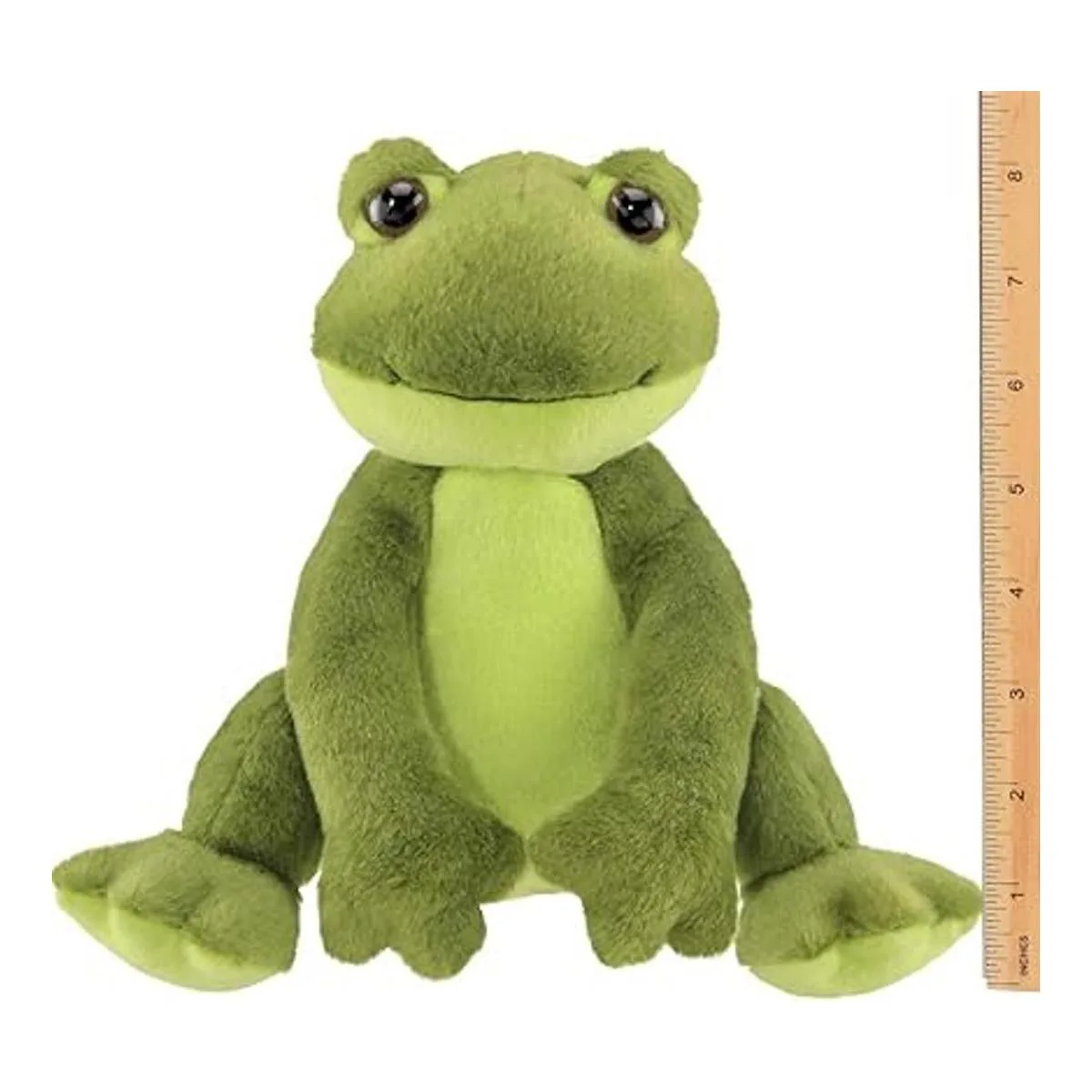 Ribbity the Frog: Adorable rana de peluche verde de 8.5 pulgadas de alto con piel suave y una cara expresiva dulce, superficie lavable