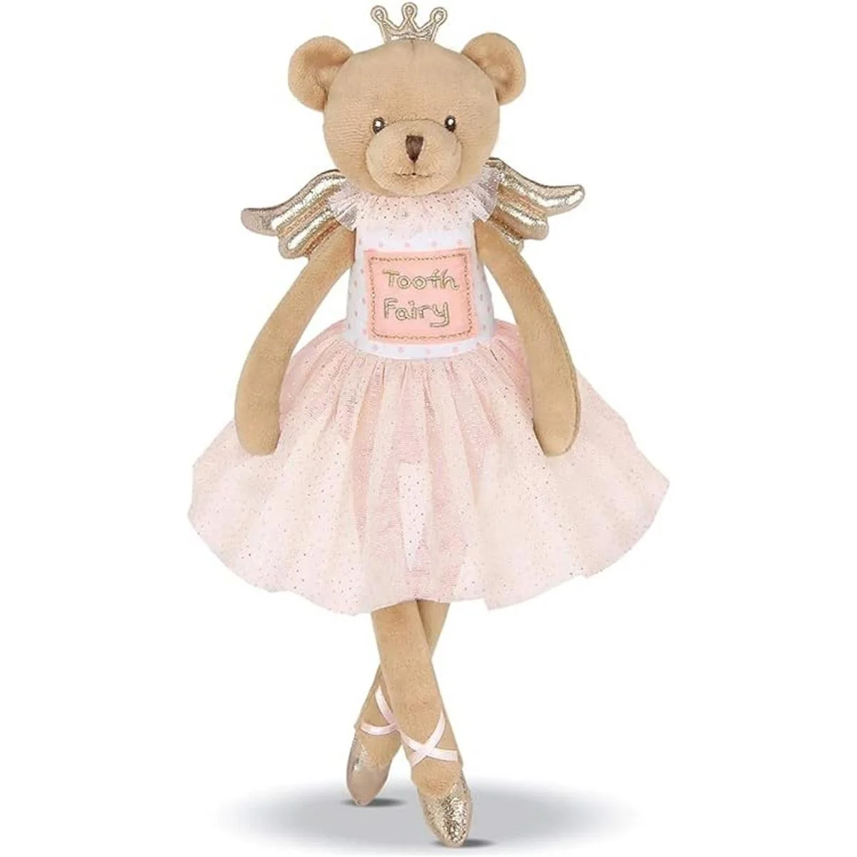 Oso de balerina de hadas de dientes: oso de peluche de 14 pulgadas adorablemente lindo vestido con dientes de bailarina con bolsillo de fácil acceso para fichas de hadas de dientes y dientes, superficie lavable