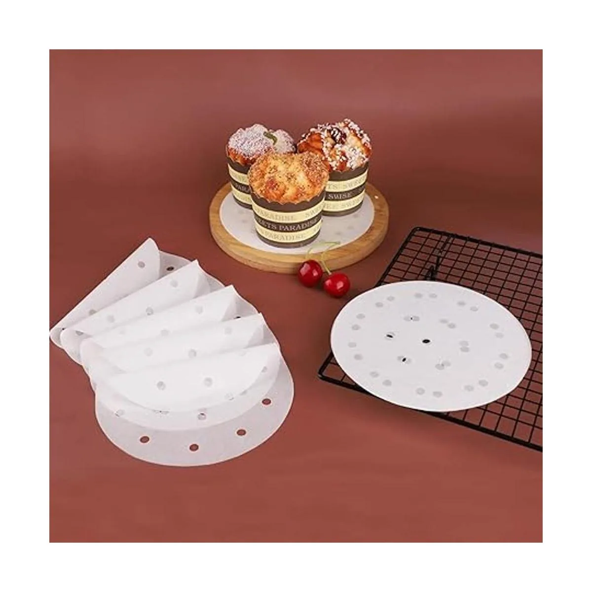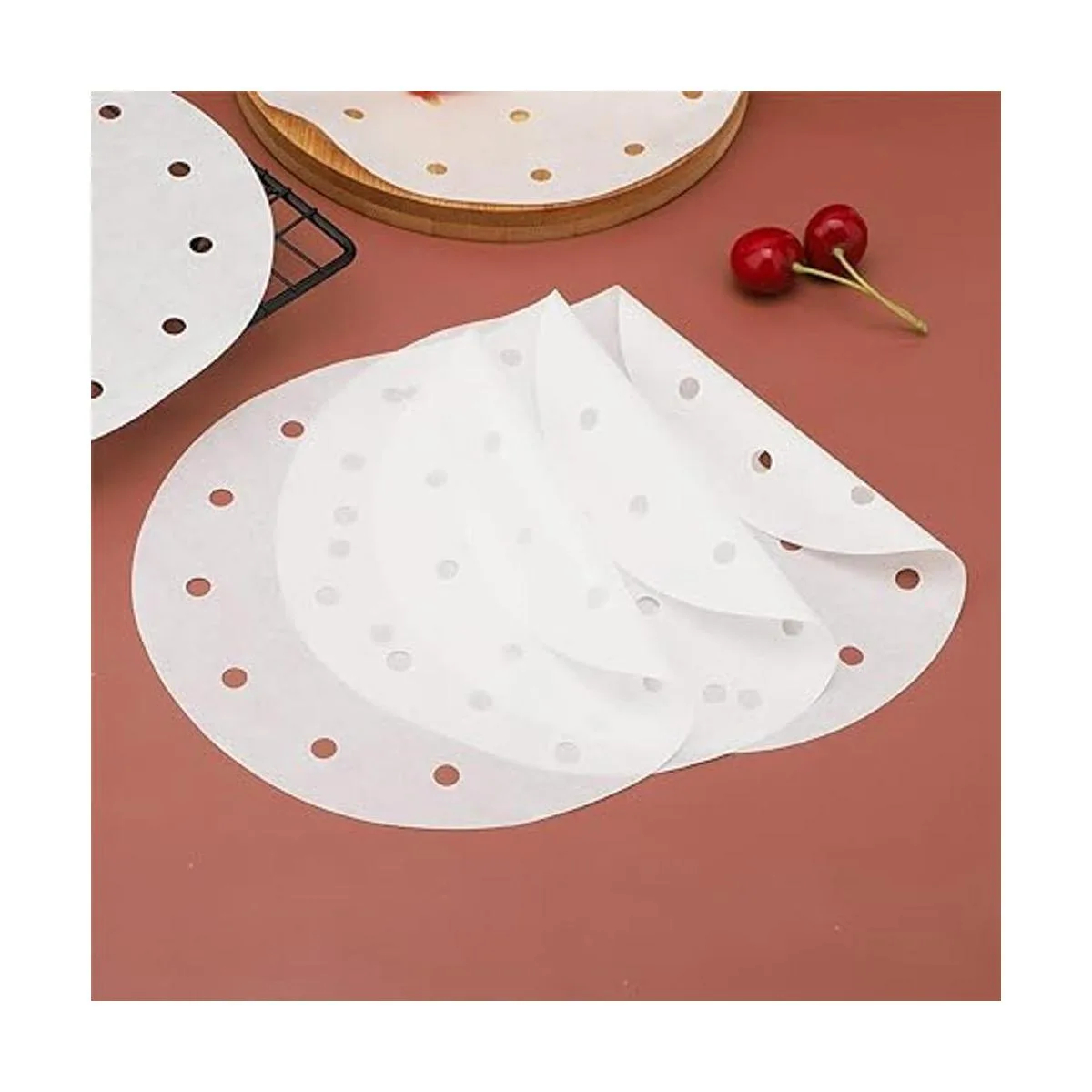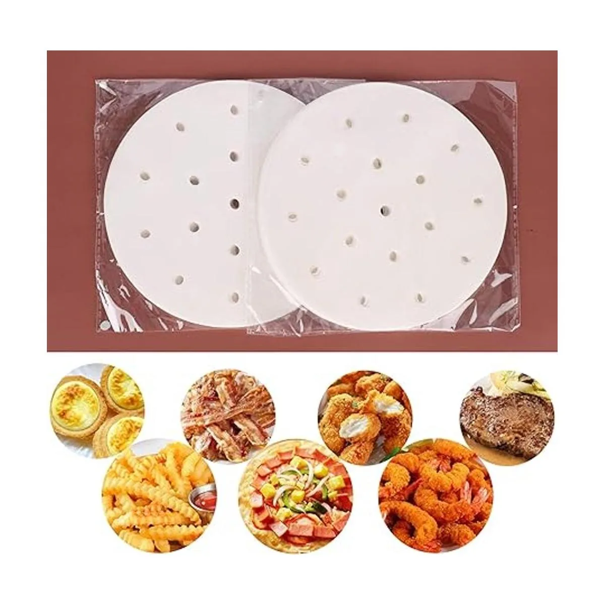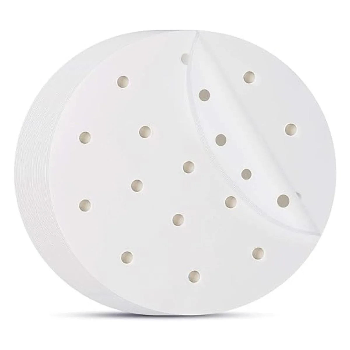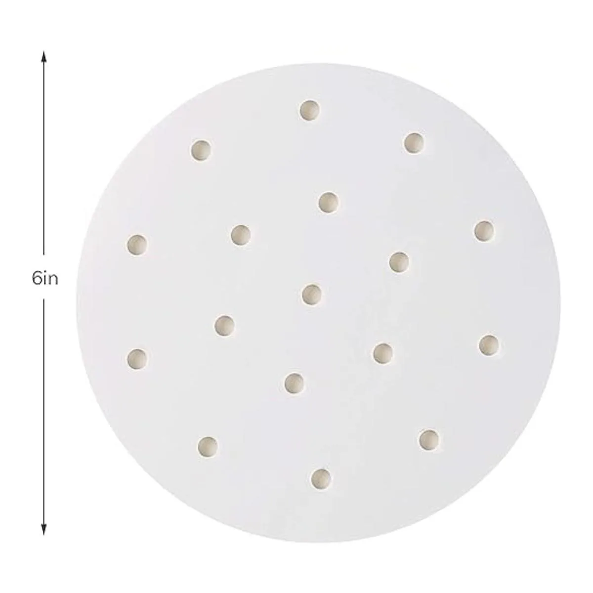 Beasea Forros redondos para freidora de aire de 6 pulgadas, 200 piezas de papel pergamino sin blanquear, papel de pergamino perforado, papel de vapor de bambú para freidora de aire y cesta de vapor