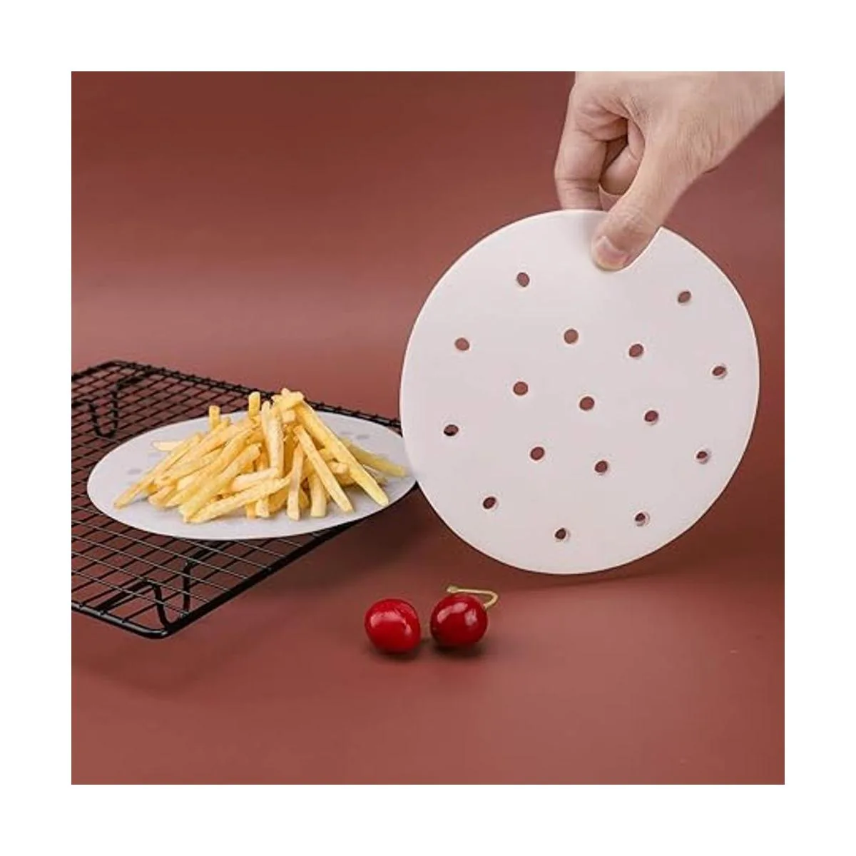Tamaño perfecto: forros de papel desechables redondos de 6 a 12 pulgadas, se adapta a la mayoría de las cestas de freidora de aire.