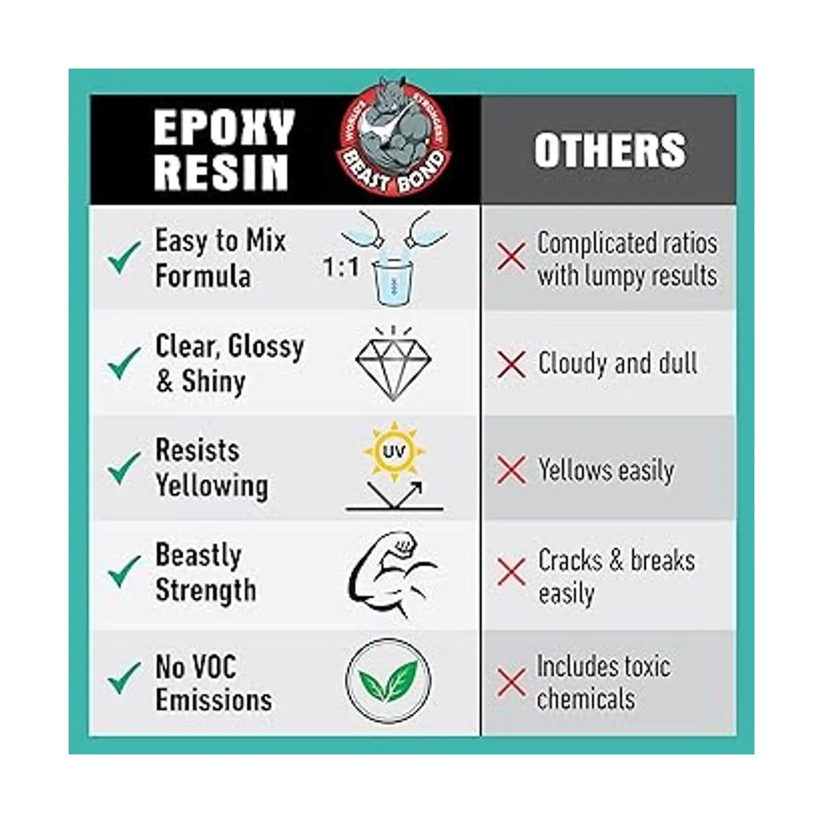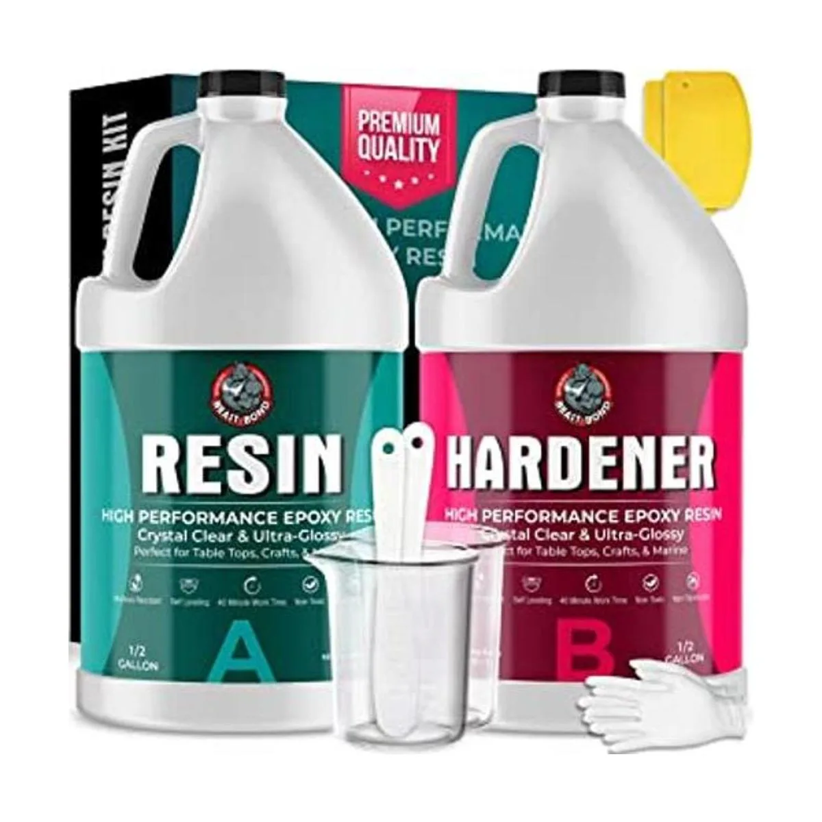Beast Bond Kit de resina epoxi, resina epoxi de alto rendimiento de 1 galón, autonivelante, burbujas mínimas, transparente, brillante, resistente a los rayos UV, perfecto para mesas y manualidades. Elección profesional número 1