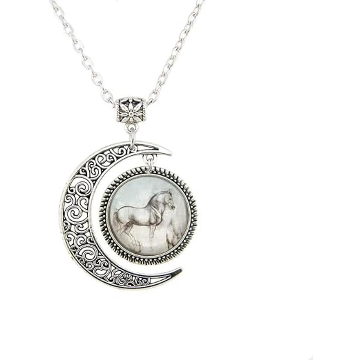 Beautiful Season DIY DA Vinci Collar con colgante de caballo Leonardo Da Vinci, collar de caballo gris y rosa aguamarina, regalo artístico, Vidrio,