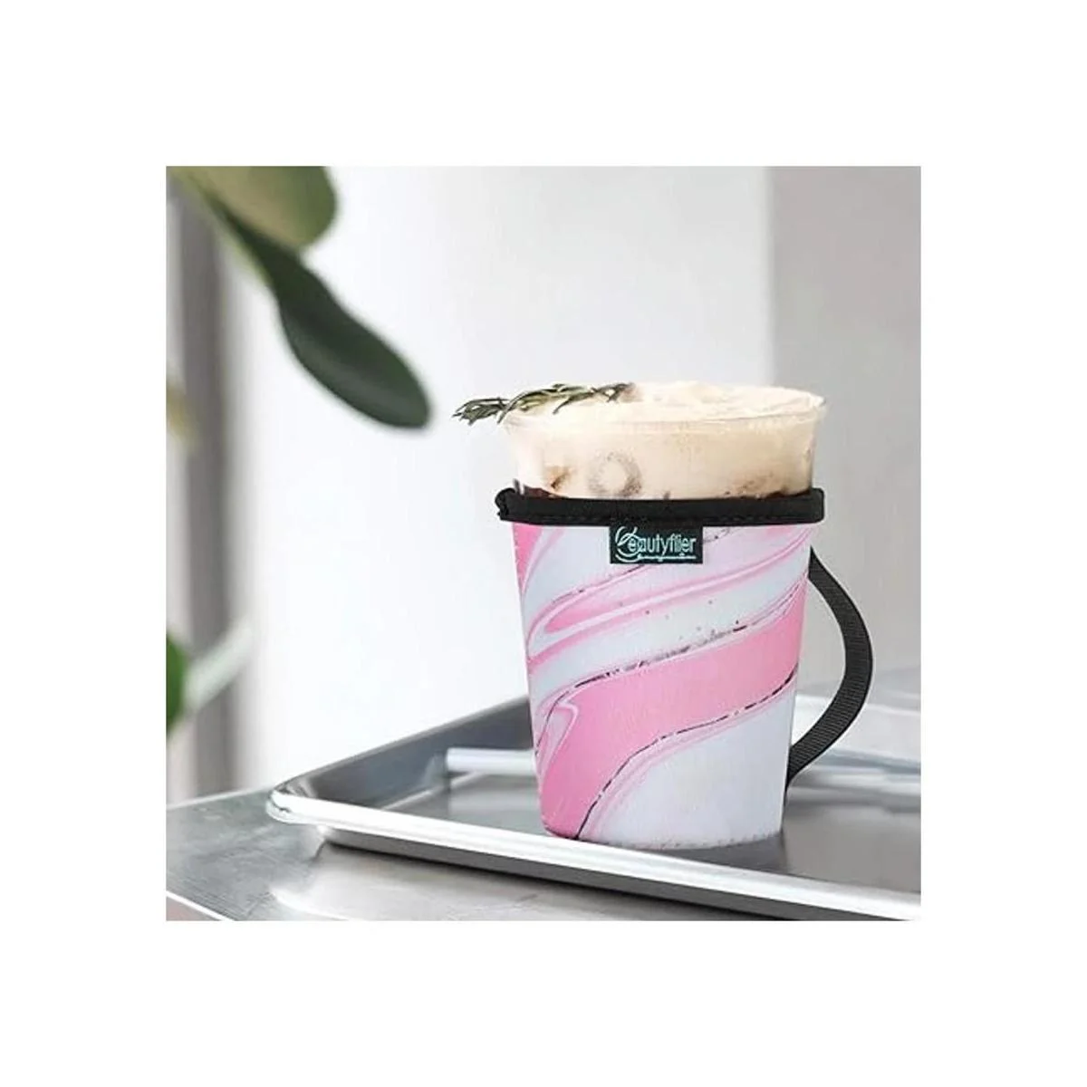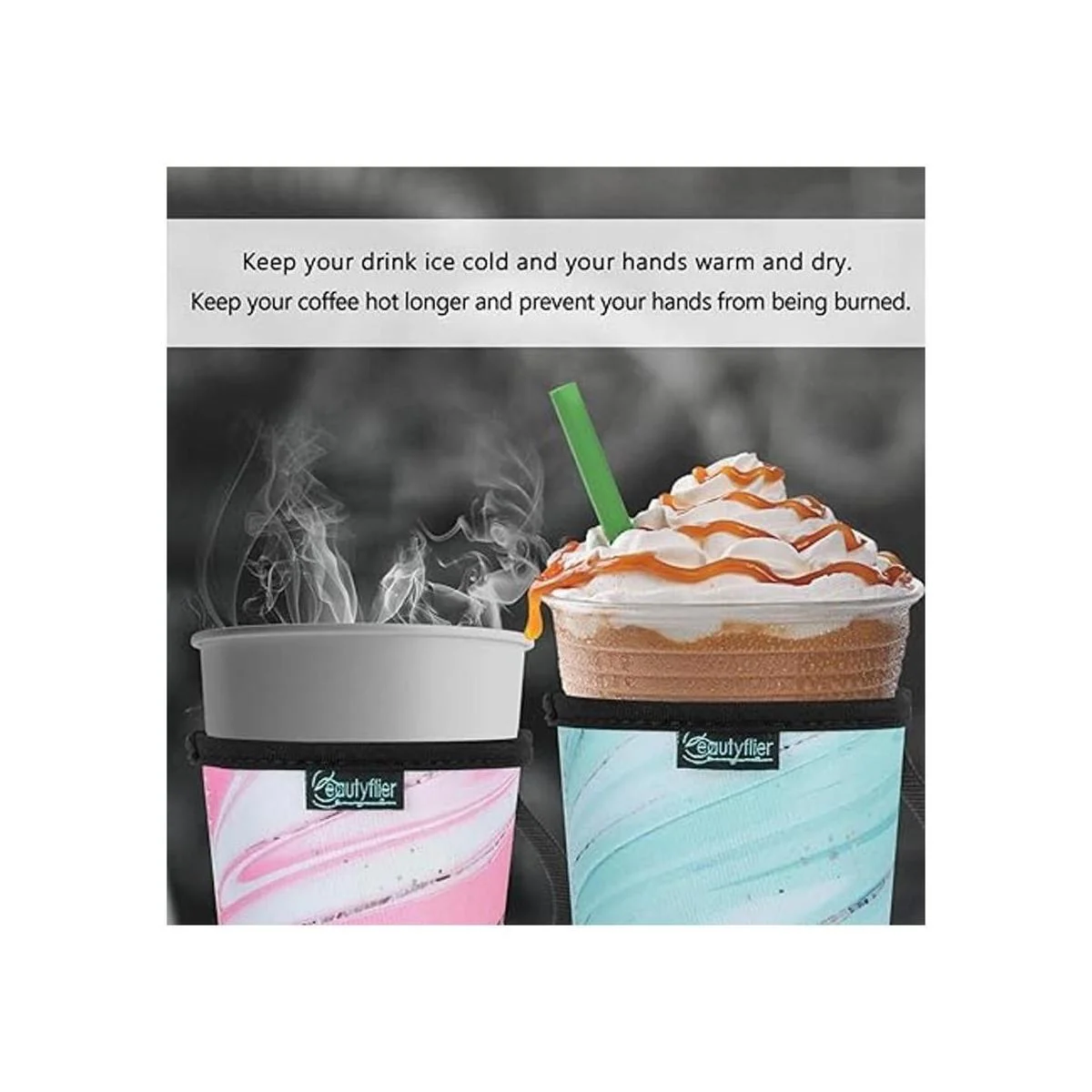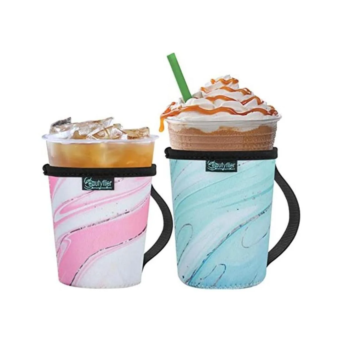 Beautyflier Paquete de 2 fundas aislantes reutilizables para taza de café helado con asa para bebidas frías, soporte de neopreno de 16 a 22 onzas para café Starbucks, donas Dunkin patrón 4