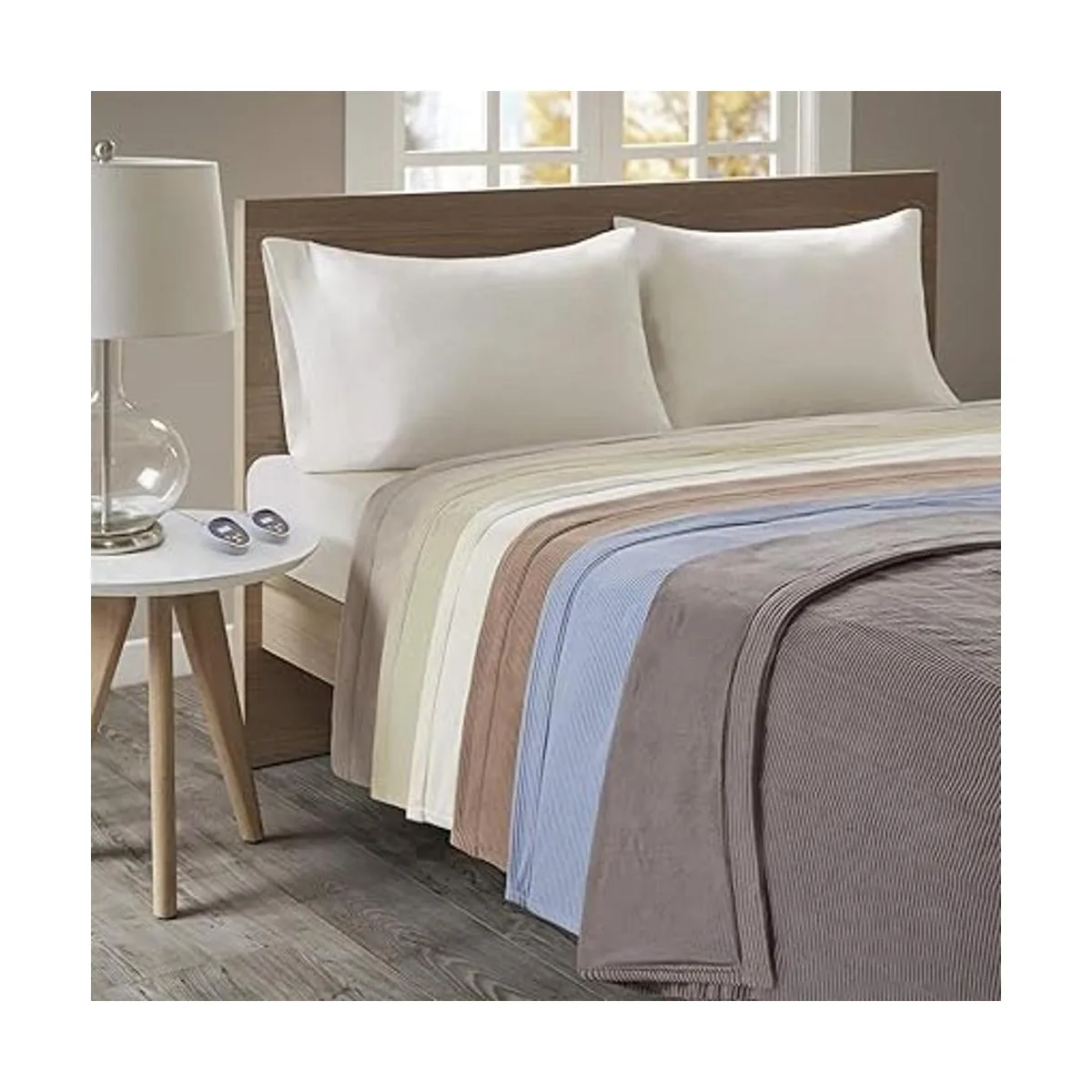 Beautyrest Manta eléctrica de lujo de microforro polar ultra suave con textura acanalada, acogedora y cómoda cubierta para clima frío, calentamiento rápido, apagado automático, controlador de ajuste de calor de 20 niveles, Queen, azul
