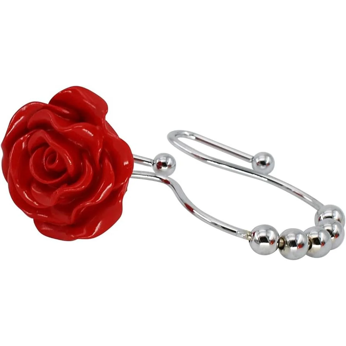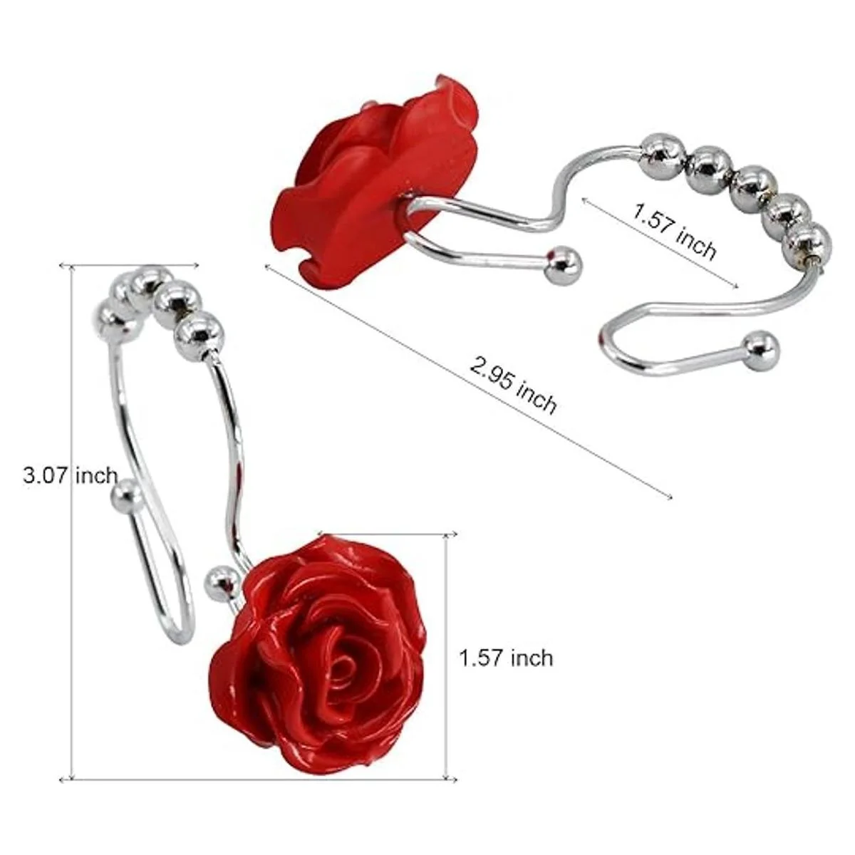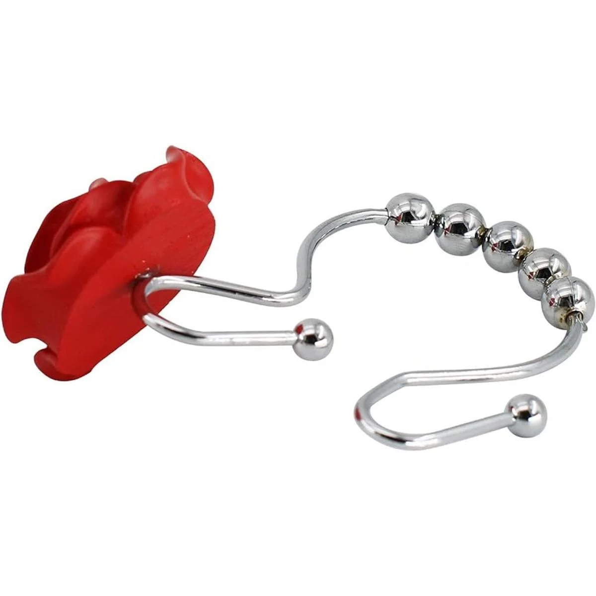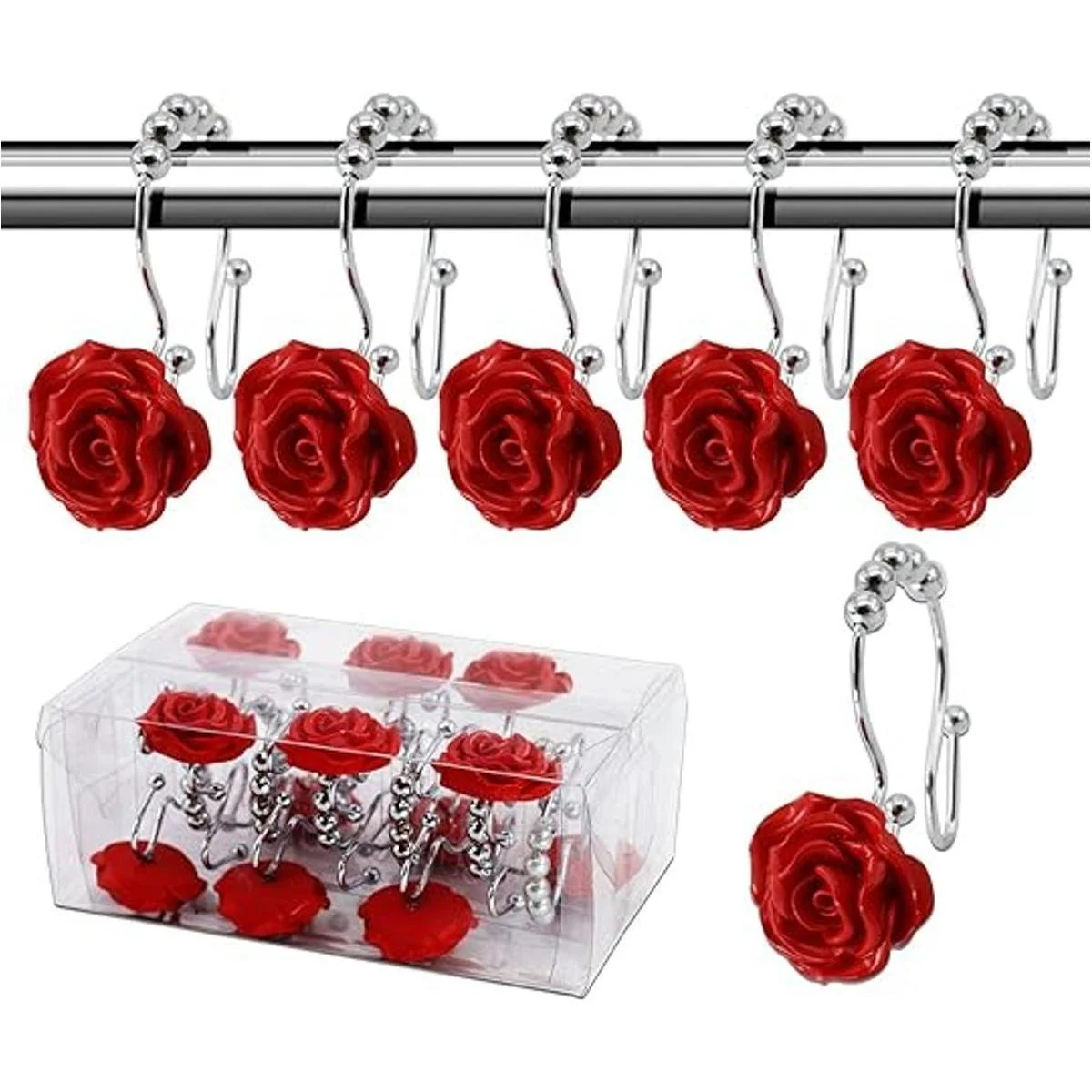 BEAVO Ganchos para cortina de ducha de color rosa, 12 anillos de cortina de ducha de doble deslizamiento, acero inoxidable, anillo decorativo a prueba de óxido, con resina rosa para barras de ducha rojo