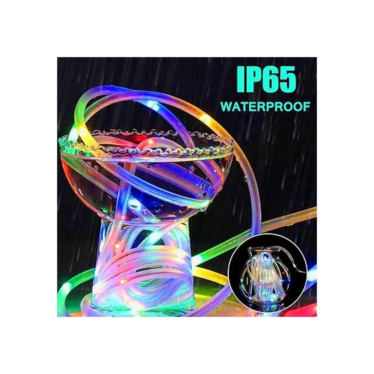 Luces exteriores impermeables: la parte de la cadena LED impermeable se puede sumergir en agua, y la carcasa de la batería de IP44 puede soportar salpicaduras de agua, se puede utilizar normalmente incluso en días de lluvia.