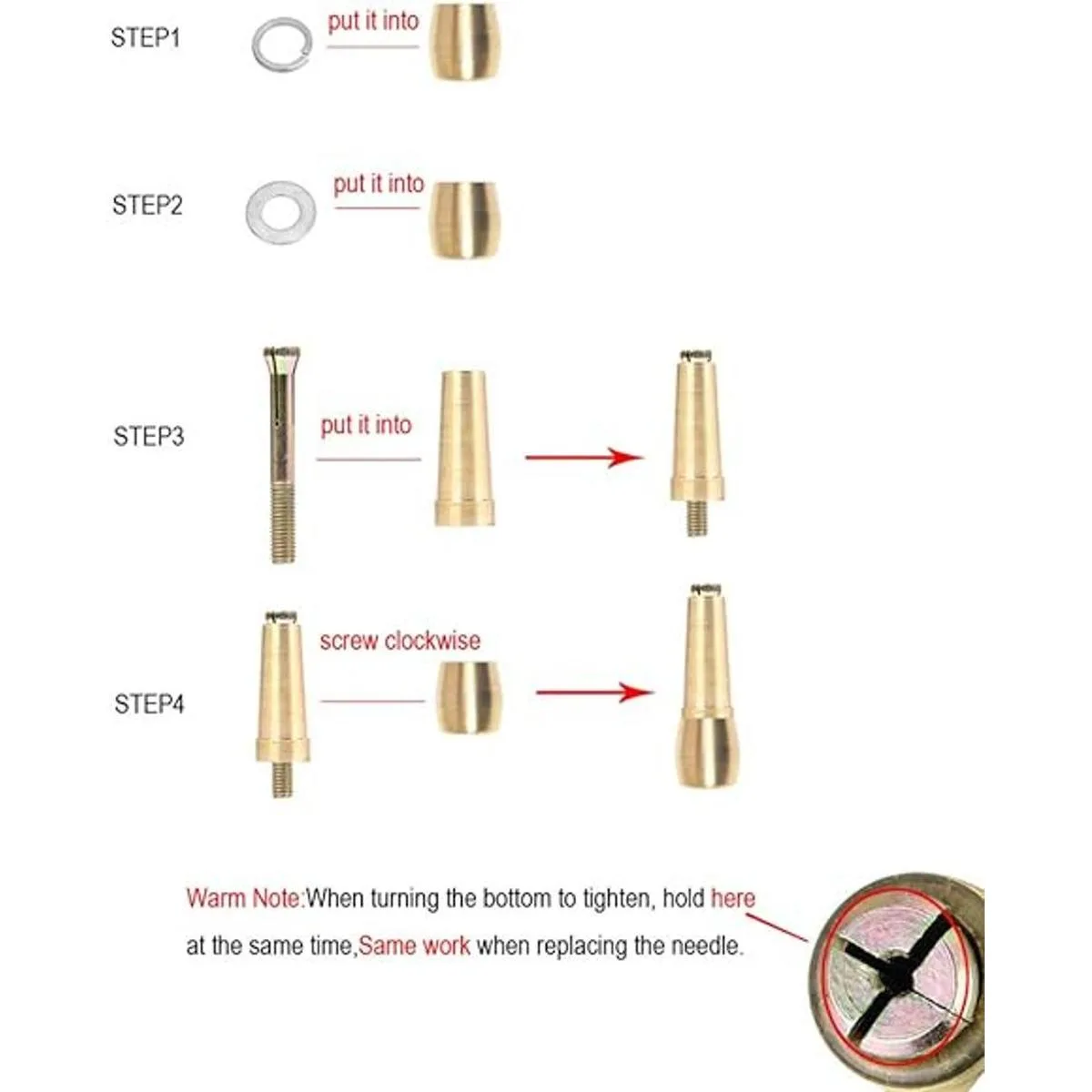 Incluye: 1 vástago cónico de cobre, 1 vástago cónico de cobre, 1 aguja recta, 1 aguja de agujero, 1 ganchillo curvado, 2 ganchillo rectos y 3 colores de hilo de nailon de 492.1 ft.