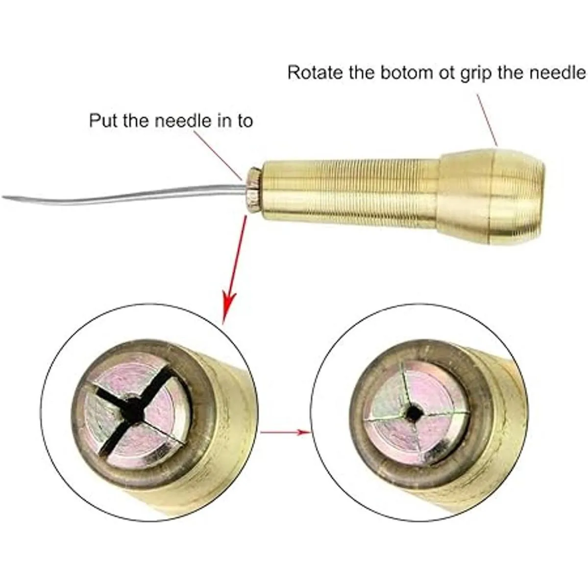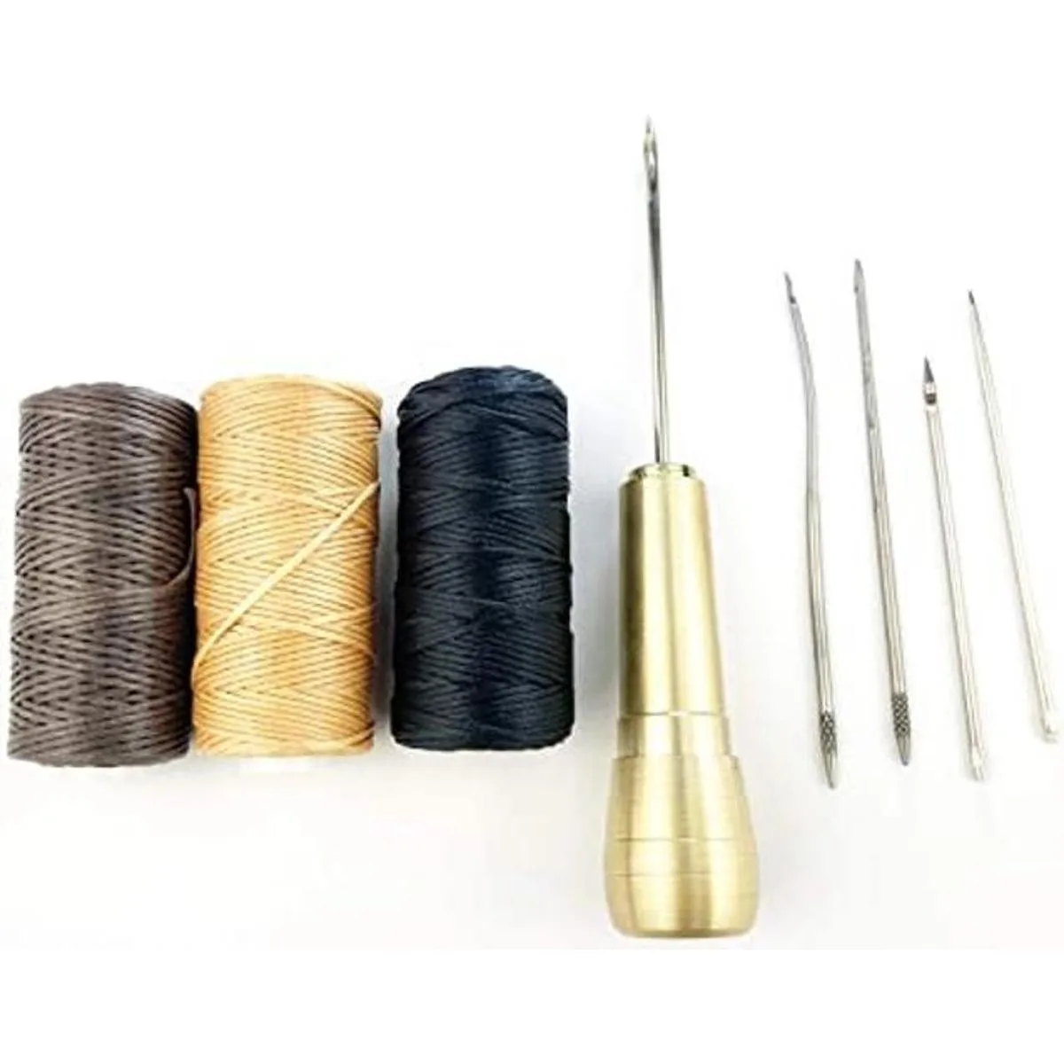 Becho Juego de 5 agujas para coser punzón con mango de cobre para reparación de zapatos y hilo encerado de costura de 150 D492.1 ft para costura de bricolajeLeatherCraft dorado