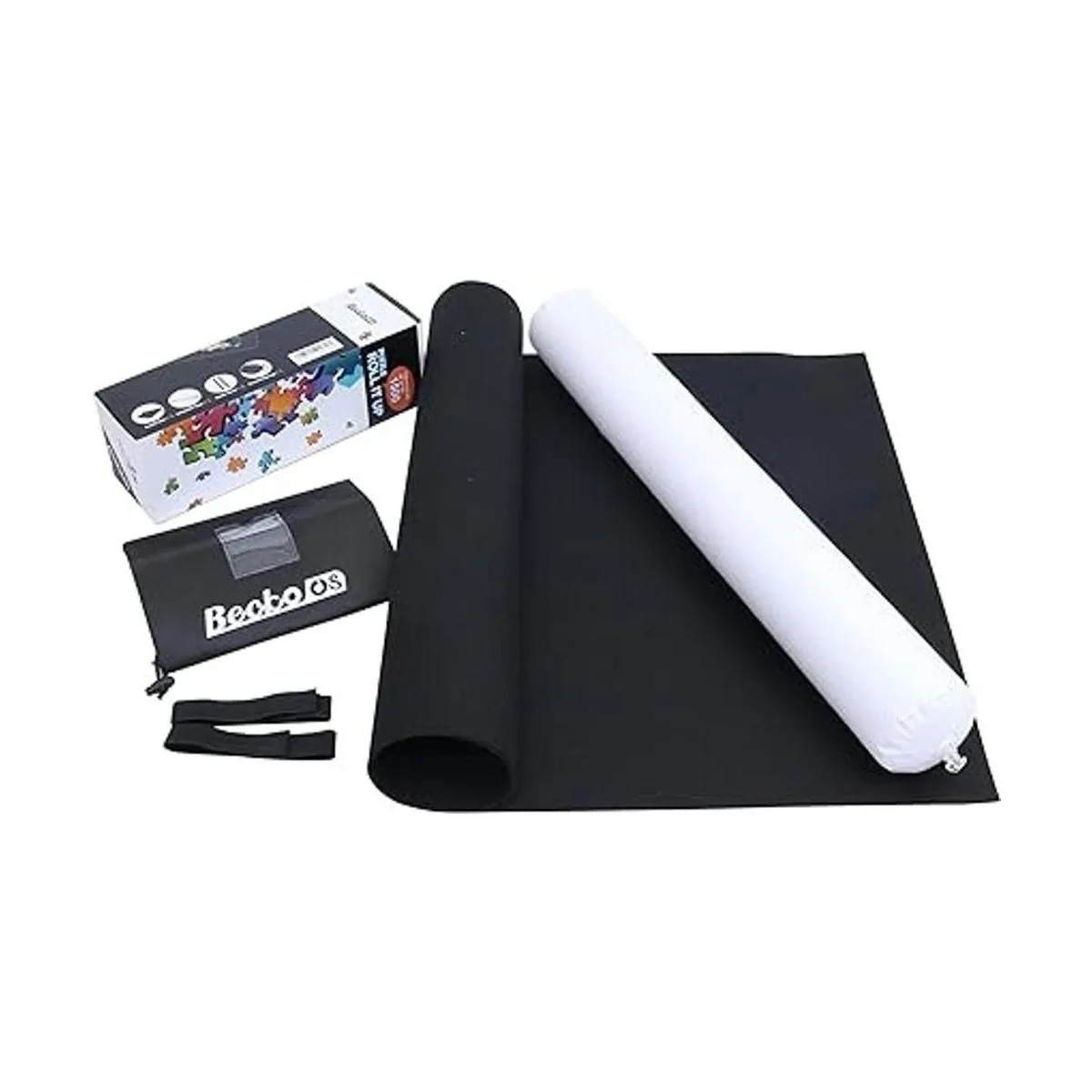 Accesorios útiles: un tubo inflable está cerrado para garantizar que tu juego sin terminar esté bien reservado para la próxima vez. Para proteger aún más tus rompecabezas de caídas, se cierran dos bandas elásticas para apretar ambos extremos de la alfombrilla enrollada.
