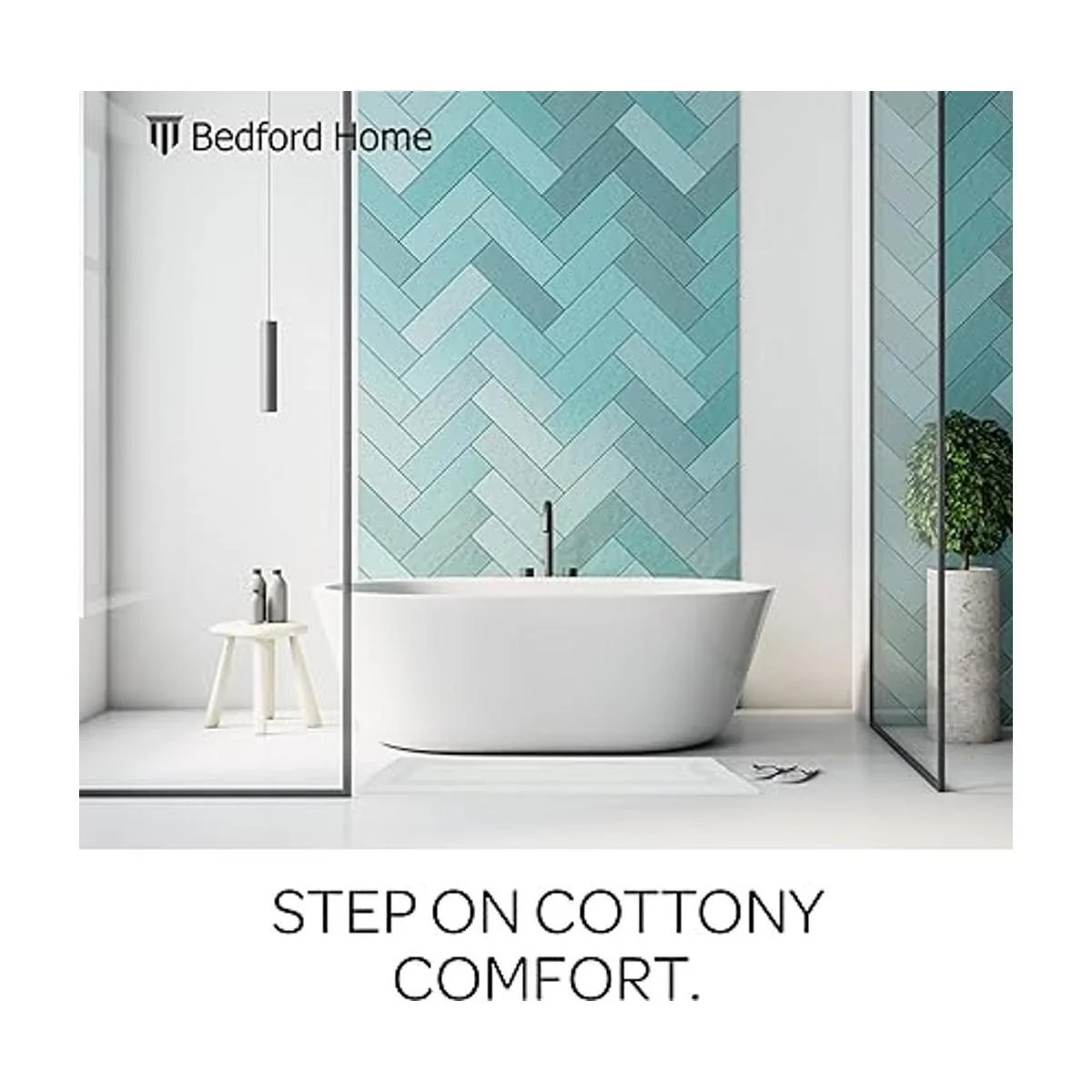 Bedford Home Alfombra de baño larga reversible 100 algodón blanco 24×60