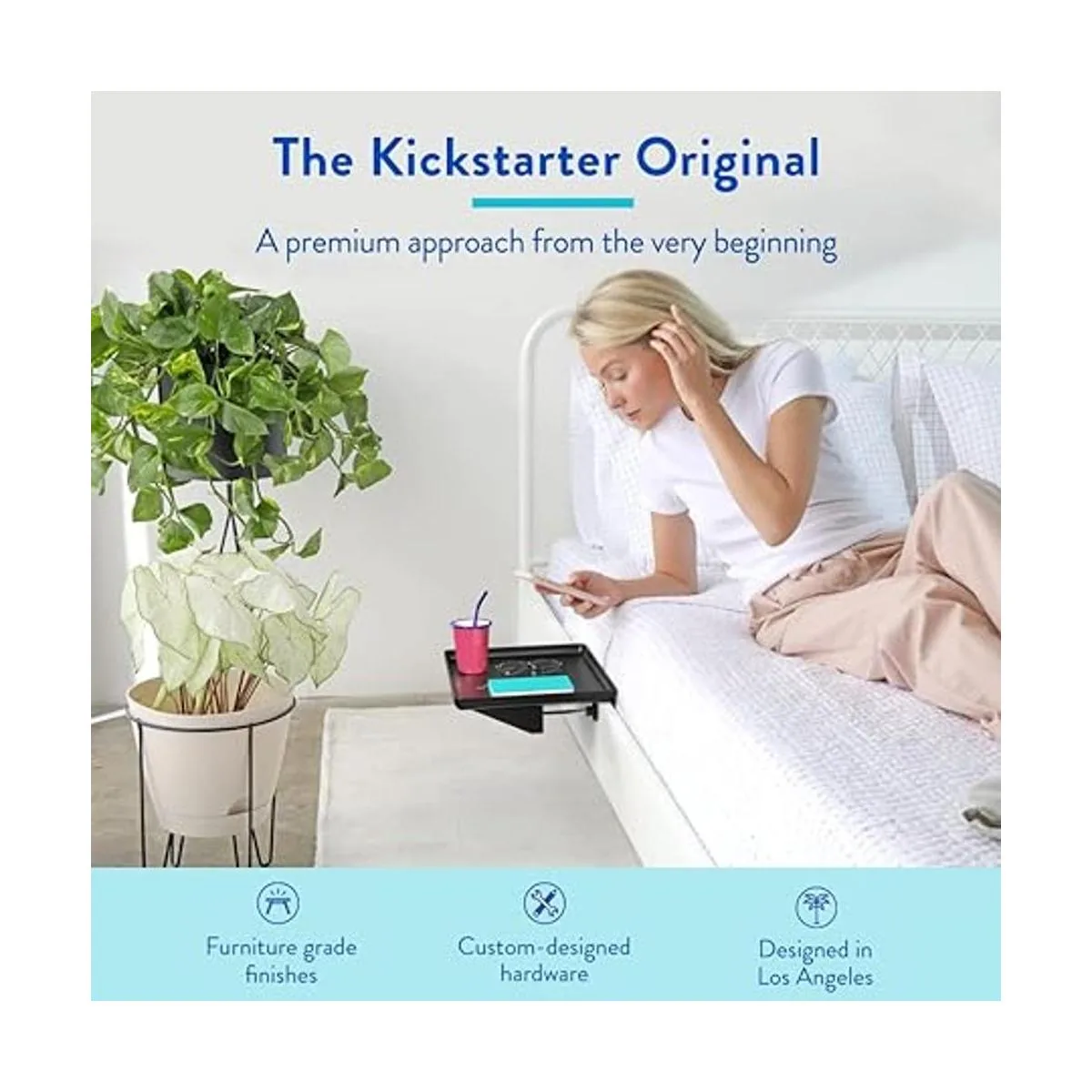 El original, probado y verdadero: lanzado desde Kickstarter y diseñado en Los ngeles hemos aparecido en Apartment Therapy, BuzzFeed, Real Simple y Business Insider, nuestra mesa organizadora original de estante de cama ayuda a los habitantes de espacios pequeños aprovechar al máximo su espacio, incluyendo personas en dormitorios pequeños, estudiantes que buscan una mesa auxiliar de litera adjunta para litera superior o bandejas esenciales de loft mesa y estantes