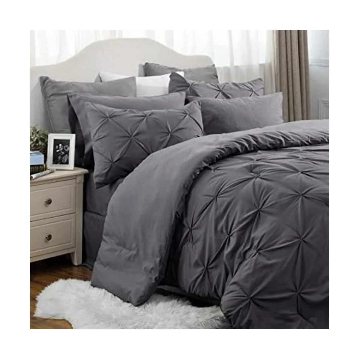 Bedsure Juegos de edredón de 8 piezas tamaño matrimonial, color gris oscuro, diseño con pliegues que viene en una bolsa, incluye edredón, sábanas y fundas de almohada