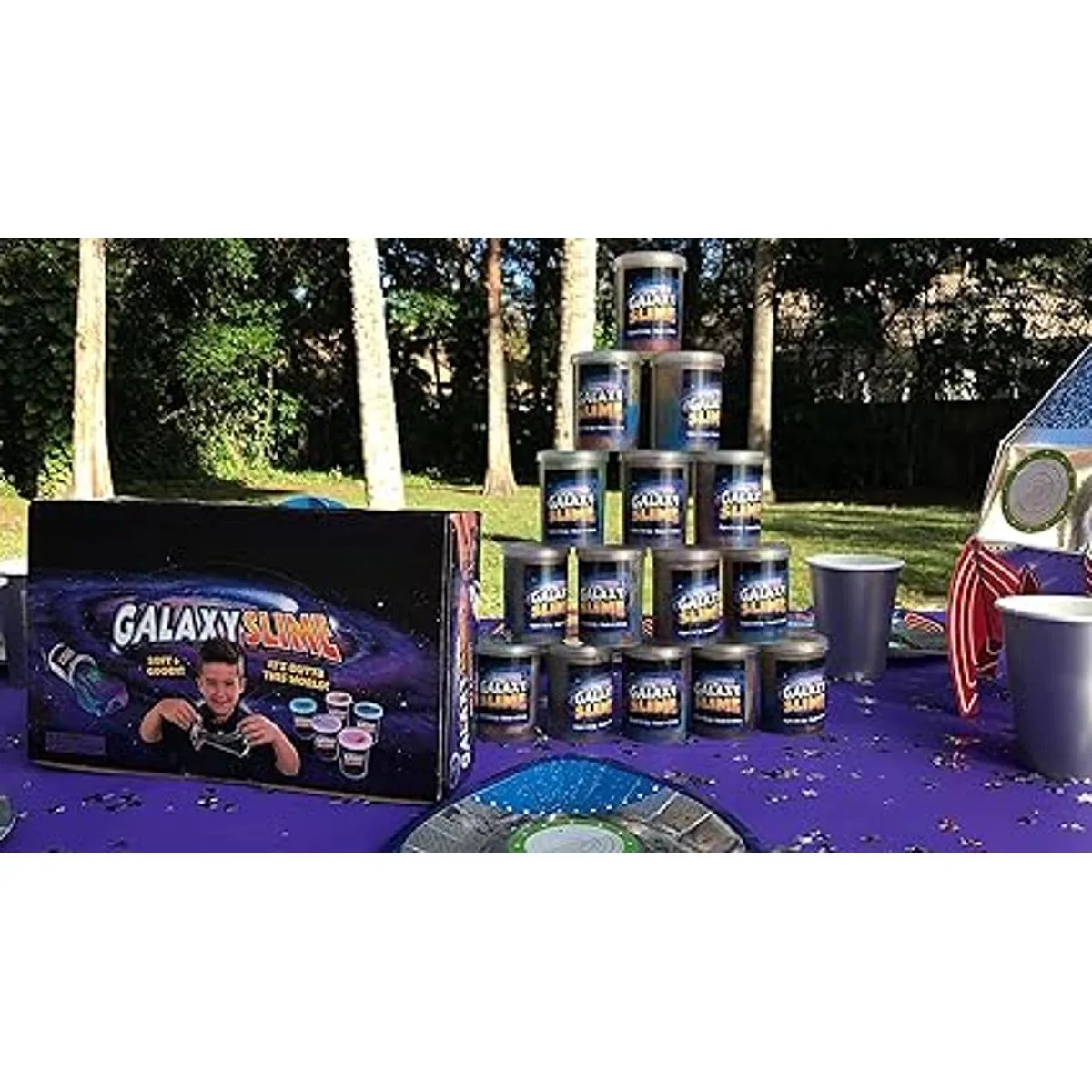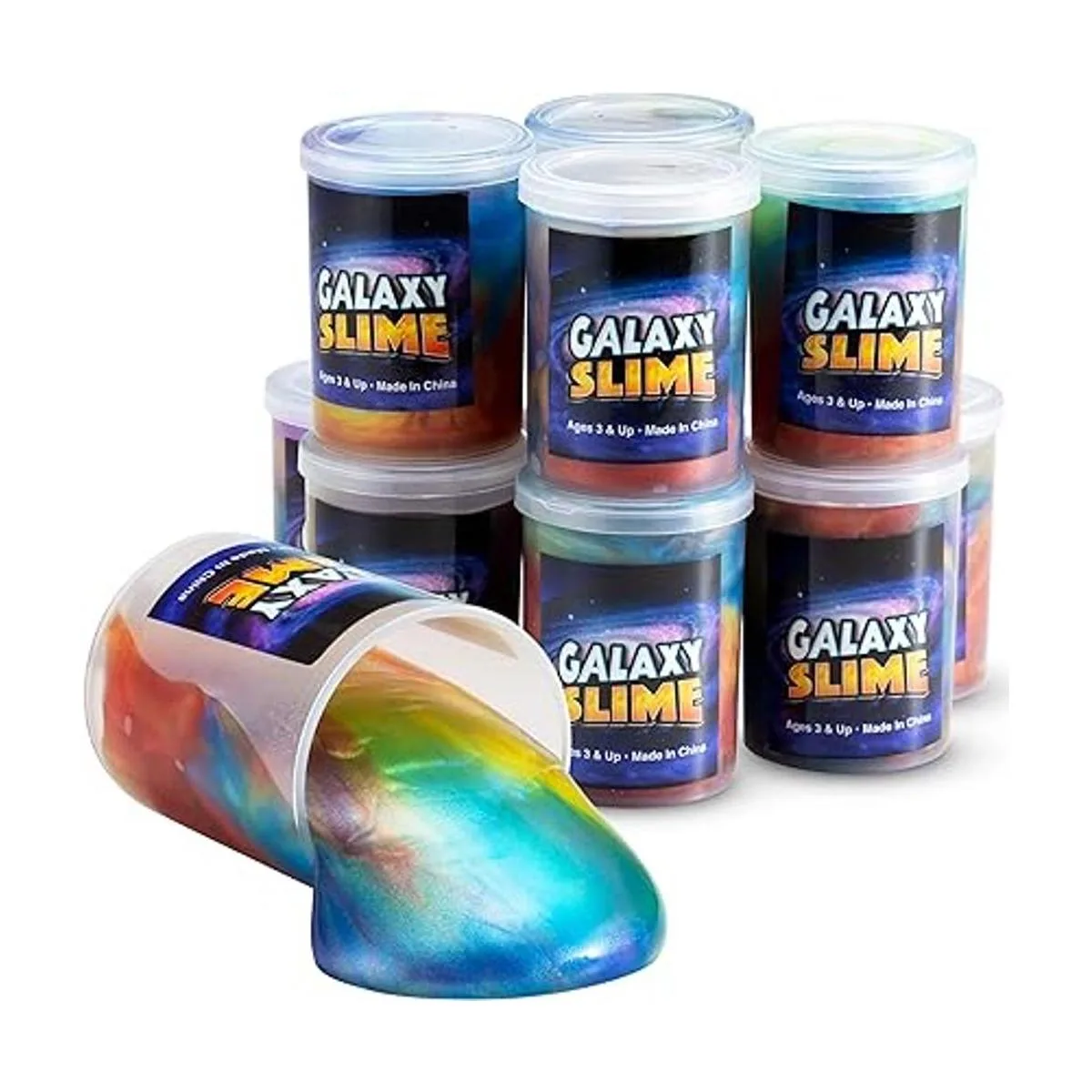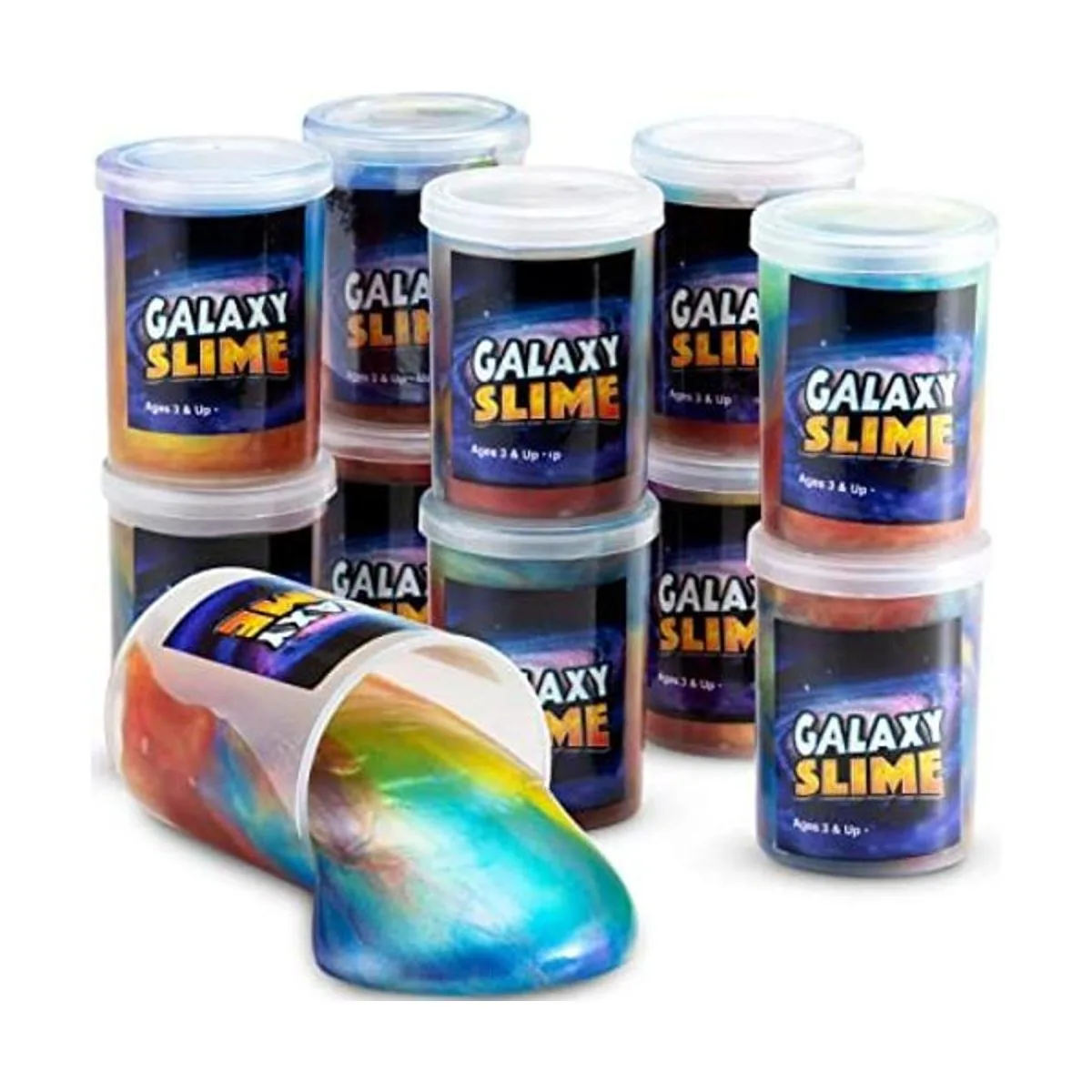 Paquete de 15 recipientes de slime Galaxy a granel: este paquete a granel de 15 recipientes de slime de galaxia prefabricados es multicolor, suave, pegajoso, no perfumado y completamente seguro para que los niños jueguen. Cuenta con una gran consistencia para que tires, aprietes, estires, doblan, enrollas y inquietos con este slime de galaxia para horas de diversión excepcional