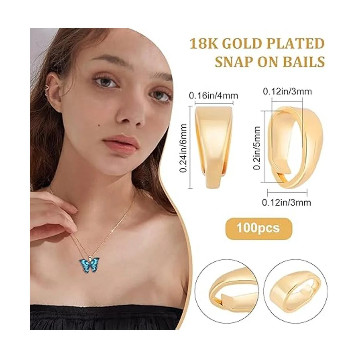 Beebeecraft 100 piezas de cierre de collar chapado en oro de 18 quilates, cierre de clip de clip de clip de metal para colgar en la fianza, conectores, fianzas para hacer broches de joyería