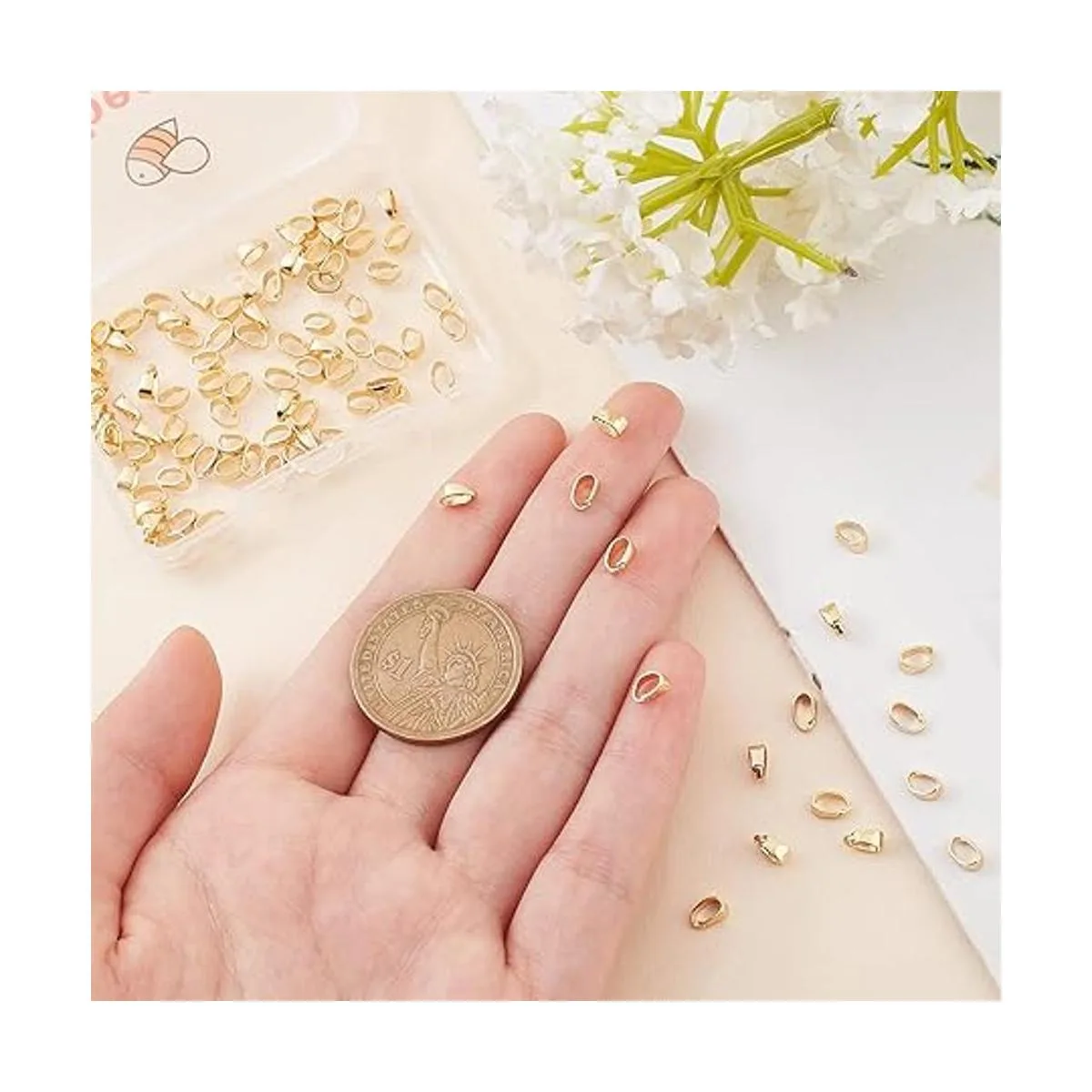 1 caja de 100 cierres de clip: viene con 100 cierres de colgante, todo el almacenamiento en una pequeña caja de plástico: 2.7 x 2.0 x 0.4 in.