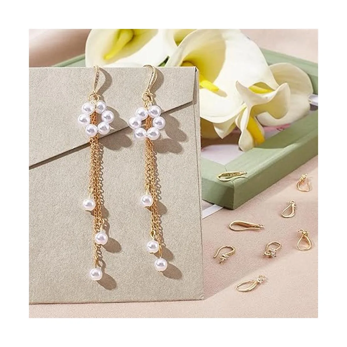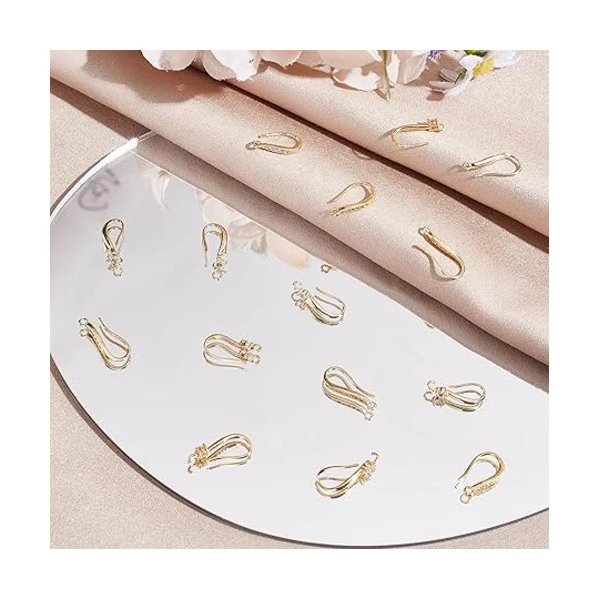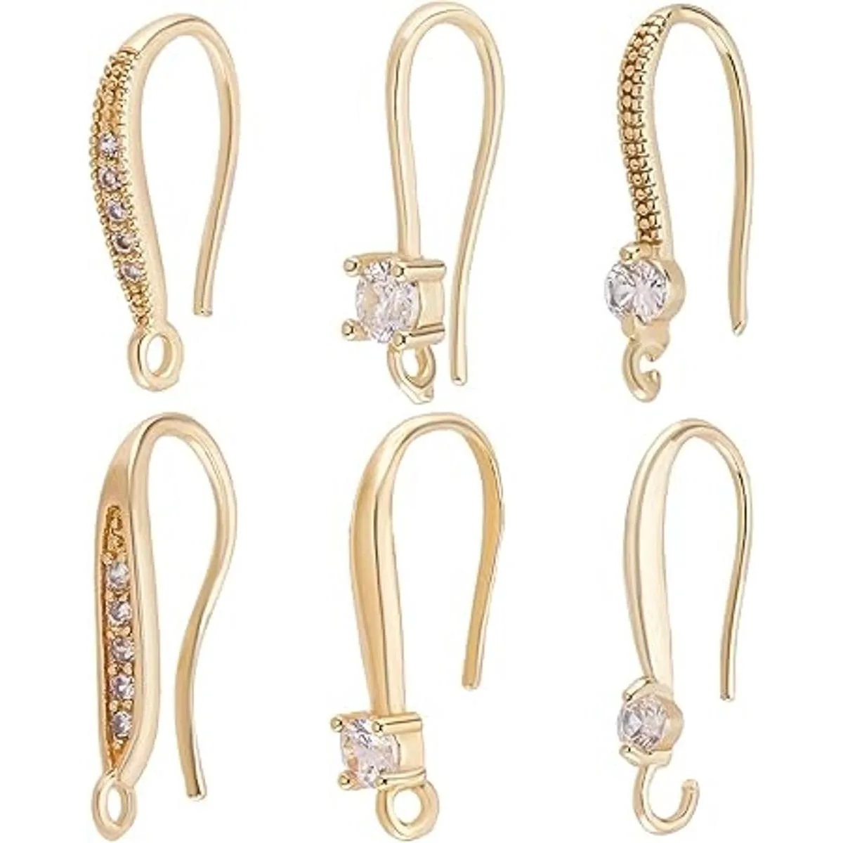 Beebeecraft 24 ganchos para aretes de circonita cúbica de 6 estilos, chapados en oro de 18 quilates, ganchos de alambre para orejas con lazo para mujeres y niñas, fabricación de joyas