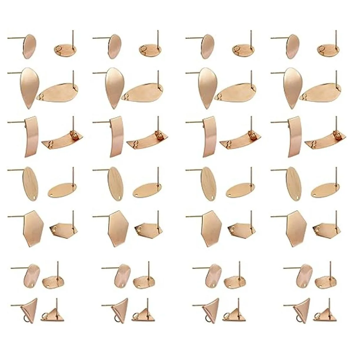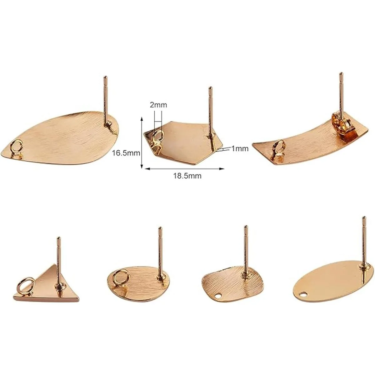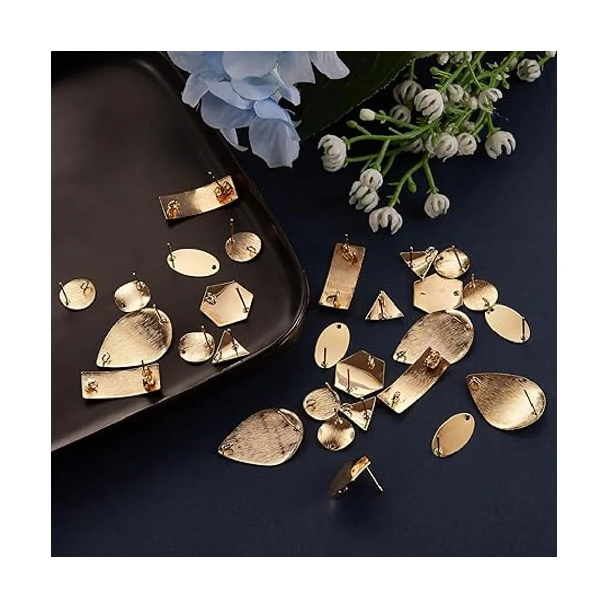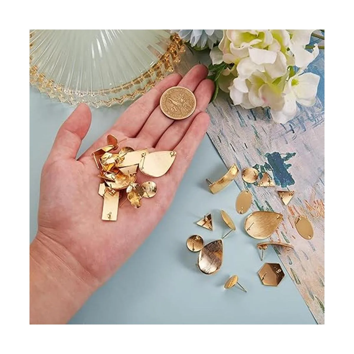 BEEFLYING 28 piezas de latón mixto de pendientes planos de aretes dorados en blanco, redondos, con lazo para hacer joyas, suministros de aretes de aretes