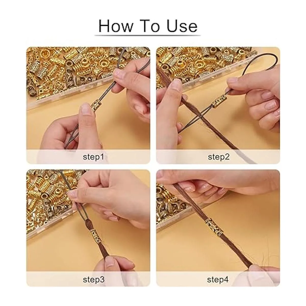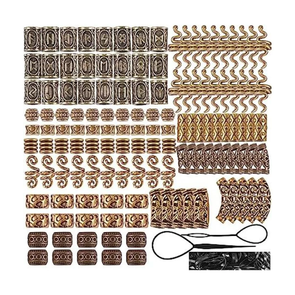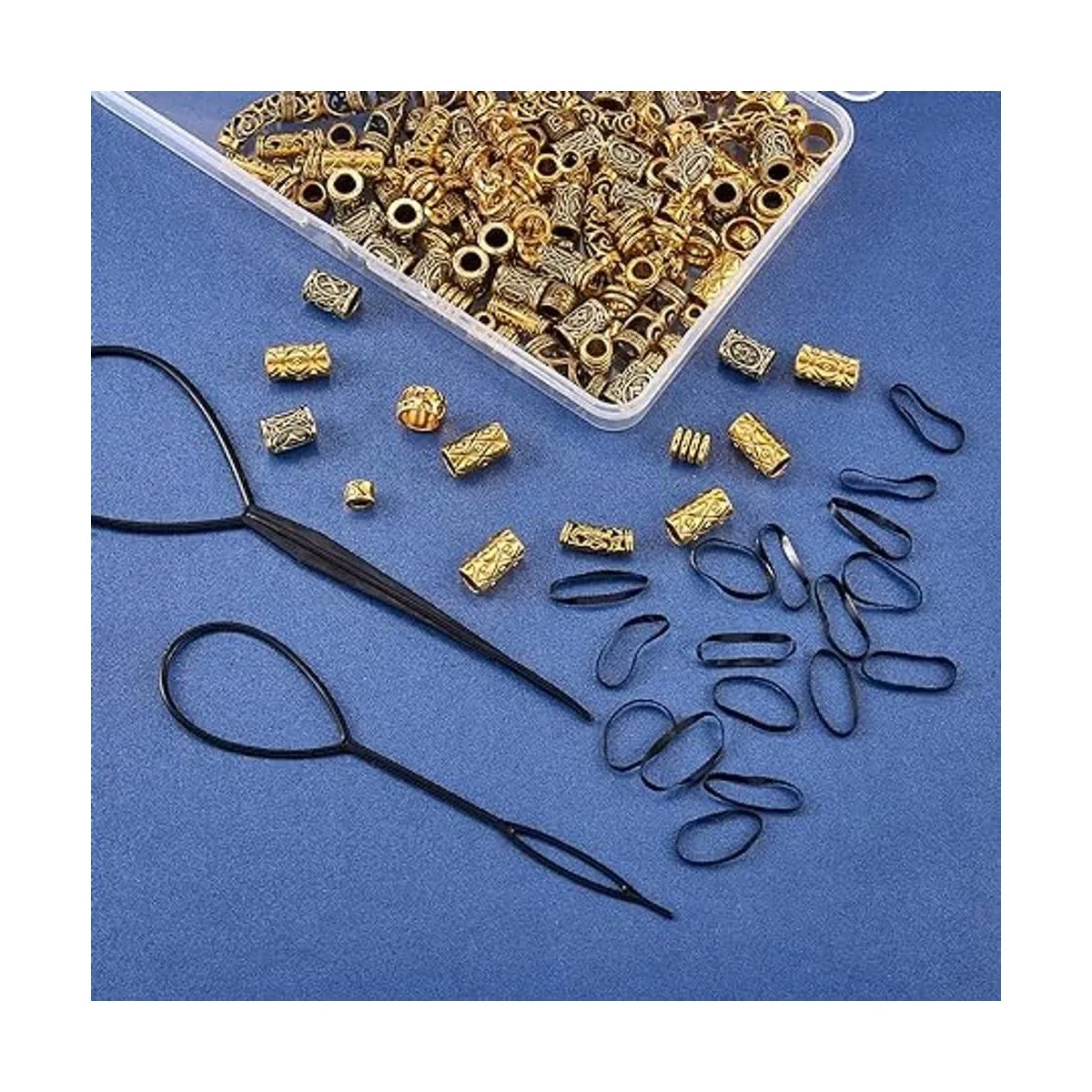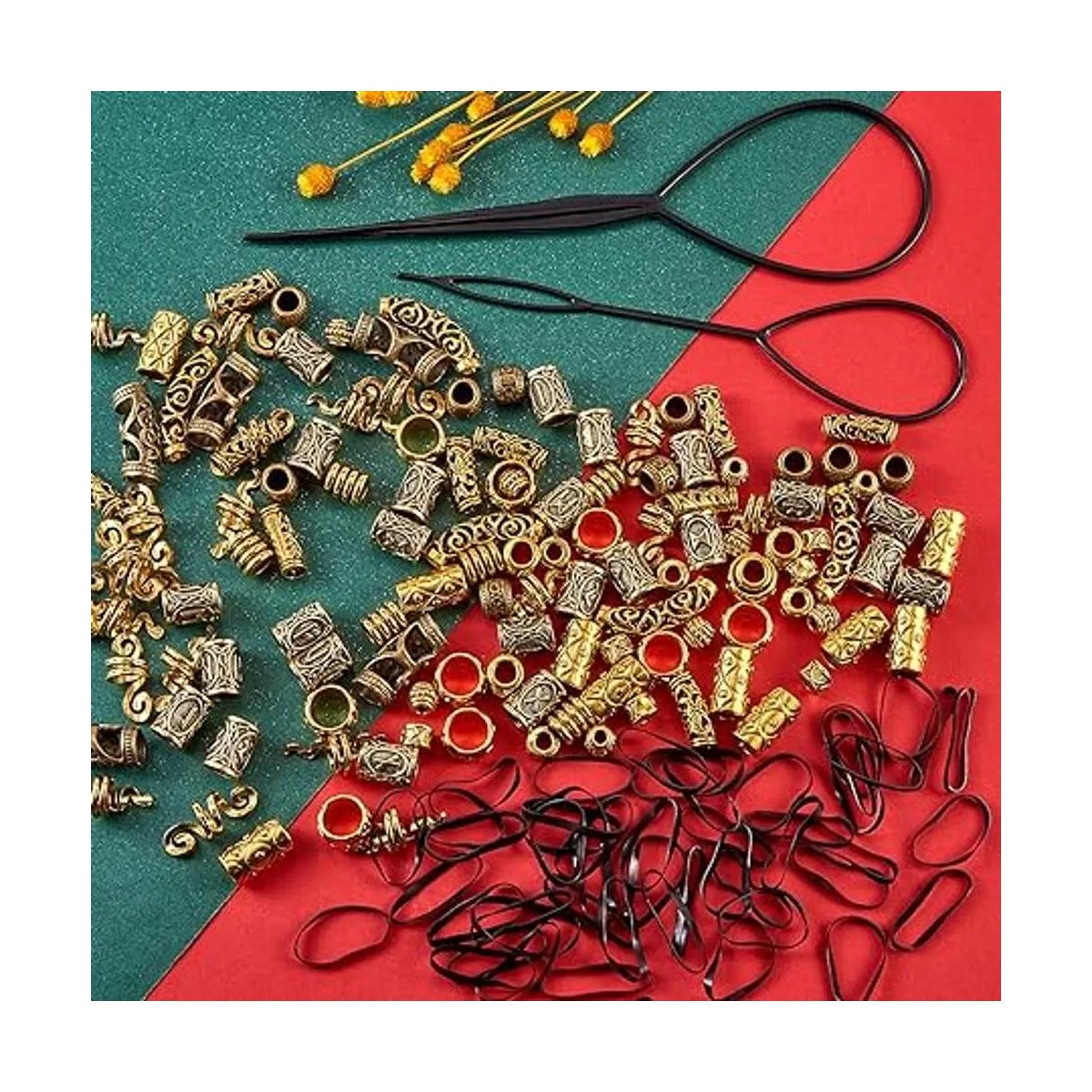 BEEFLYING 326 cuentas vikingas de barba de estilo tibetano, cuentas de aleación de estilo nórdico, cuentas sueltas, puños de bobina de cabello dorado antiguo para hacer joyas y decoración del cabello
