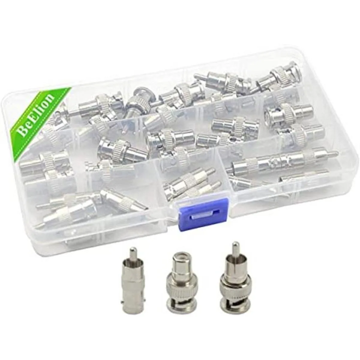BeElion Paquete de 32 conectores de cable coaxial RCA y BNC, 11 conectores BNC macho a RCA 11 adaptadores BNC macho a RCA hembra 10 conectores BNC hembra a RCA macho para sistema de vigilancia CCTV