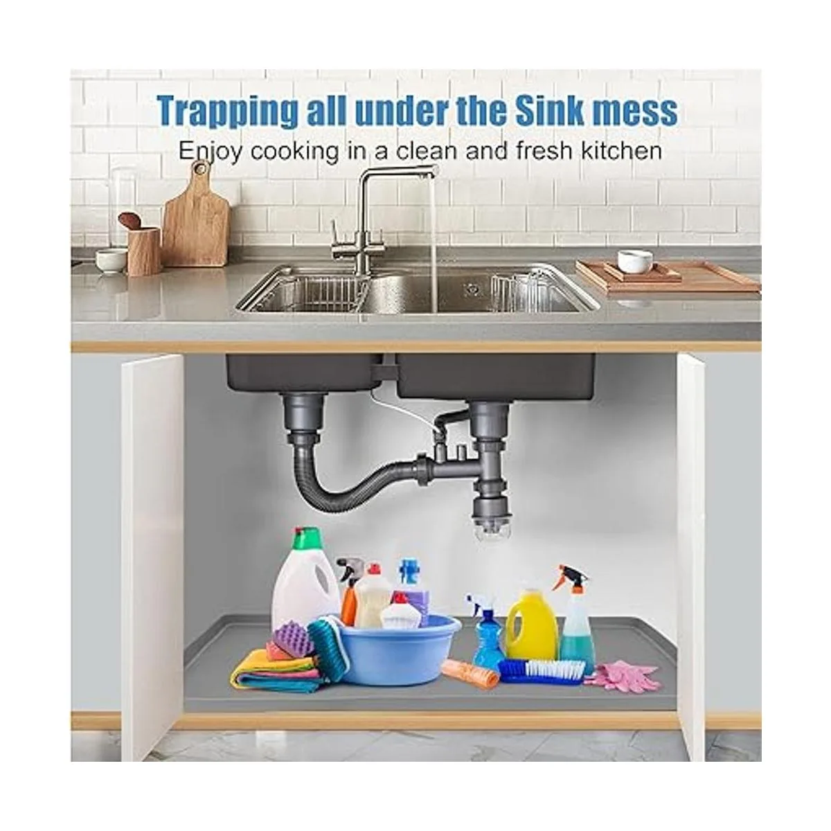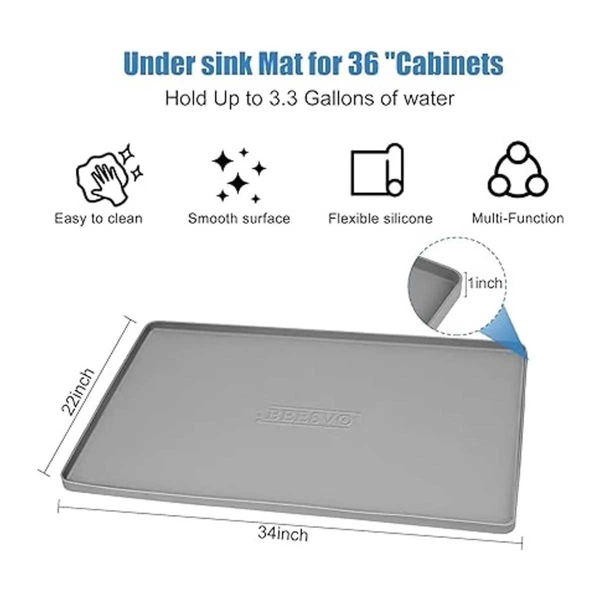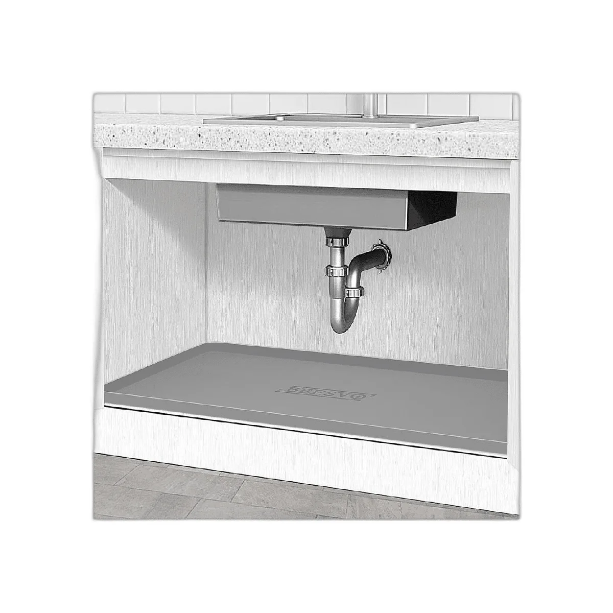 BEESVO Tapete para debajo del fregadero, forro de gabinete de cocina y baño, 34 x 22 pulgadas, bandeja de goteo impermeable para debajo del fregadero, soporta hasta 3.3 galones de líquido, gris frío